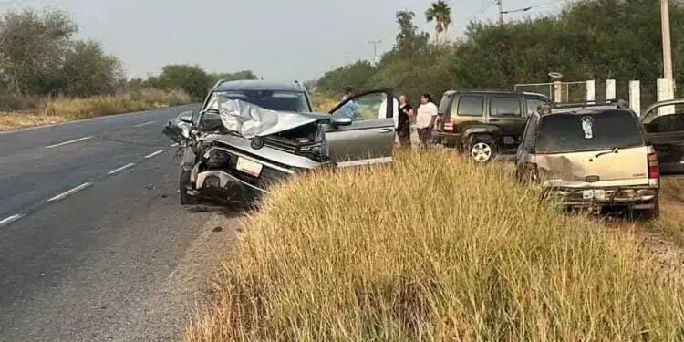 Mujer causa fuerte choque por alcance en carretera de Reynosa, Tamaulipas