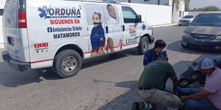 Motociclista y taxista protagonizan fuerte choque en Matamoros, Tamaulias