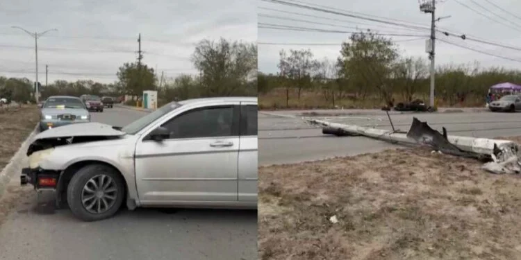 Mujer choca contra poste, lo derriba y huye en fraccionamiento de Matamoros, Tamaulipas