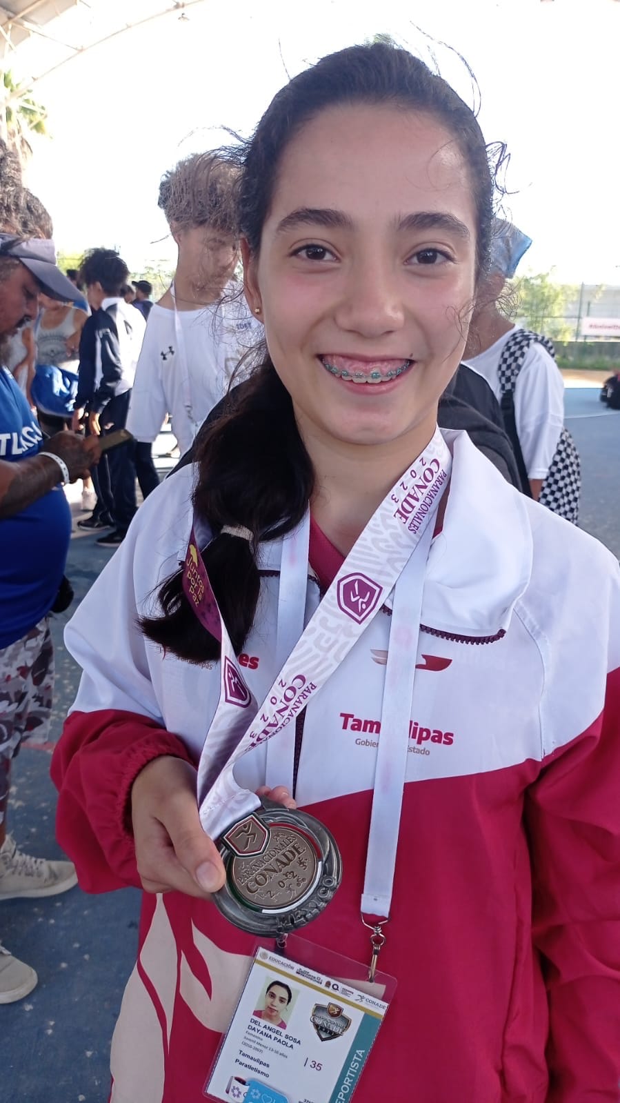 Dafne Magaly quien es originaria de Tampico, también logró medalla de tercer lugar en la prueba de 200 metros planos juvenil menor T-21.
