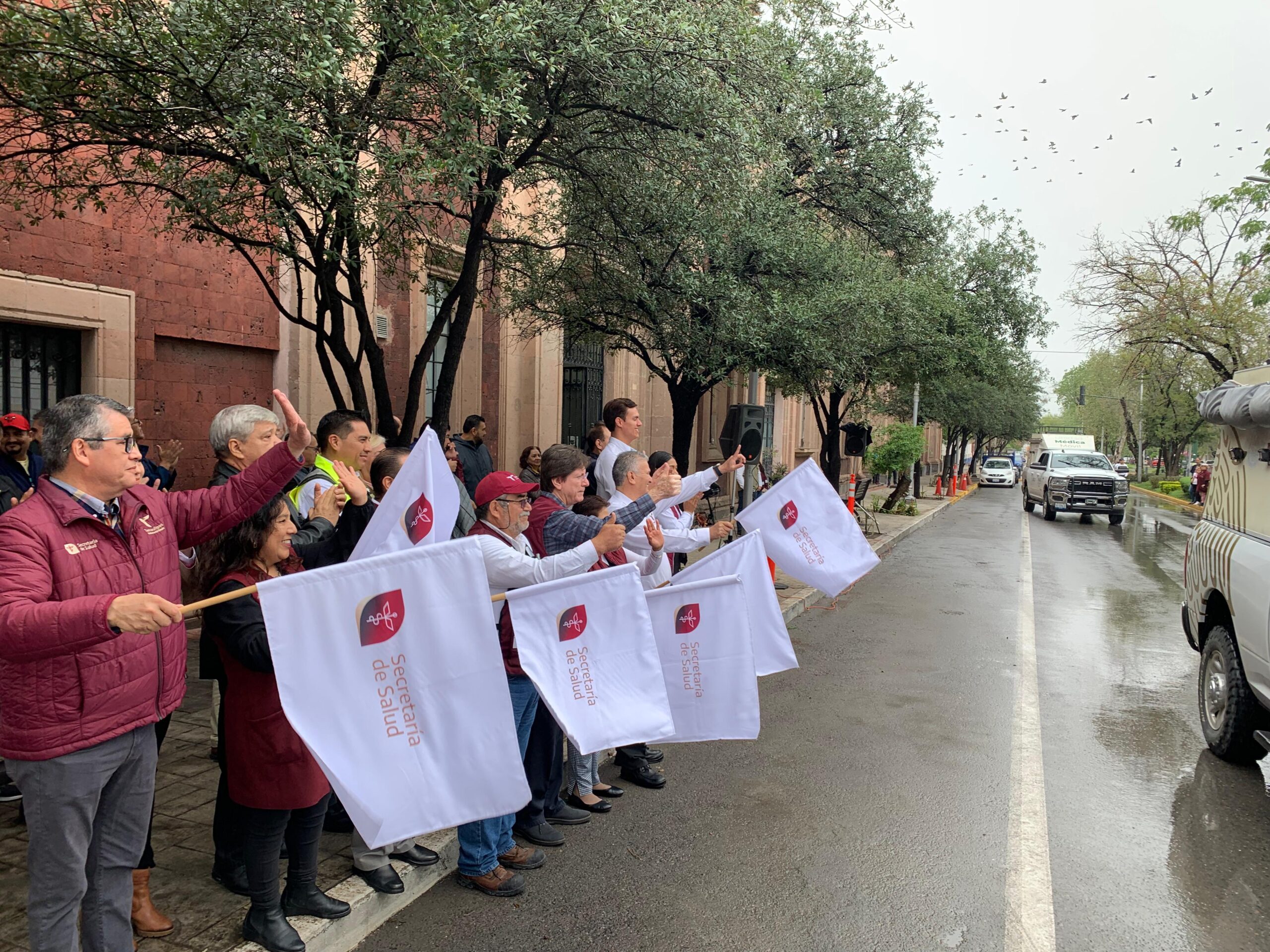 El secretario de Salud, Vicente Joel Hernández Navarro, dio el banderazo de salida a personal médico, que con medicinas y equipo se sumarán a la atención y apoyo a los afectados por el huracán “Otis”, que azotó al estado de Guerrero.