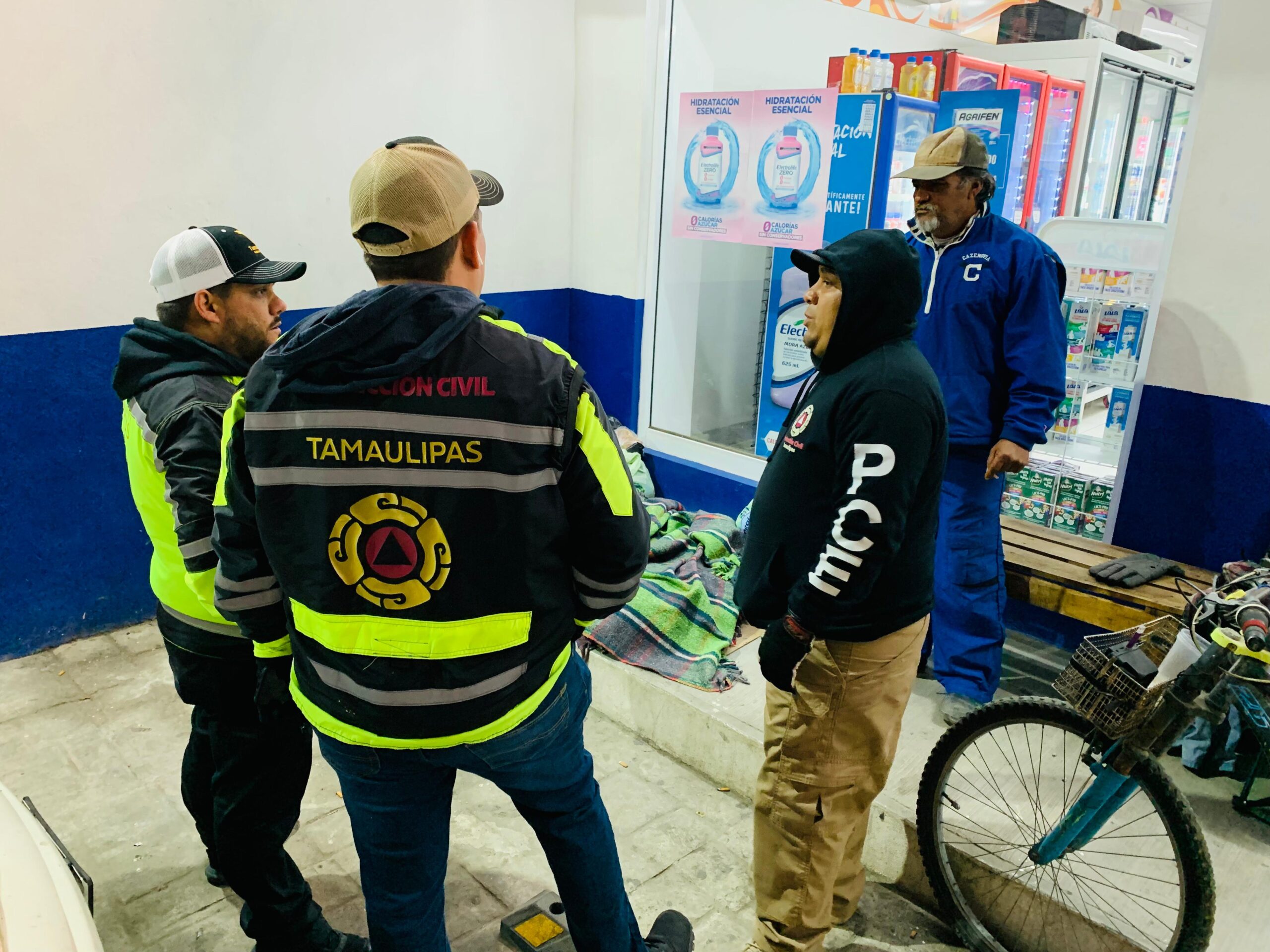 La Coordinación Estatal de Protección Civil realizó un operativo nocturno para el resguardo, protección y atención a personas vulnerables en distintas zonas y puntos estratégicos de la capital tamaulipeca.