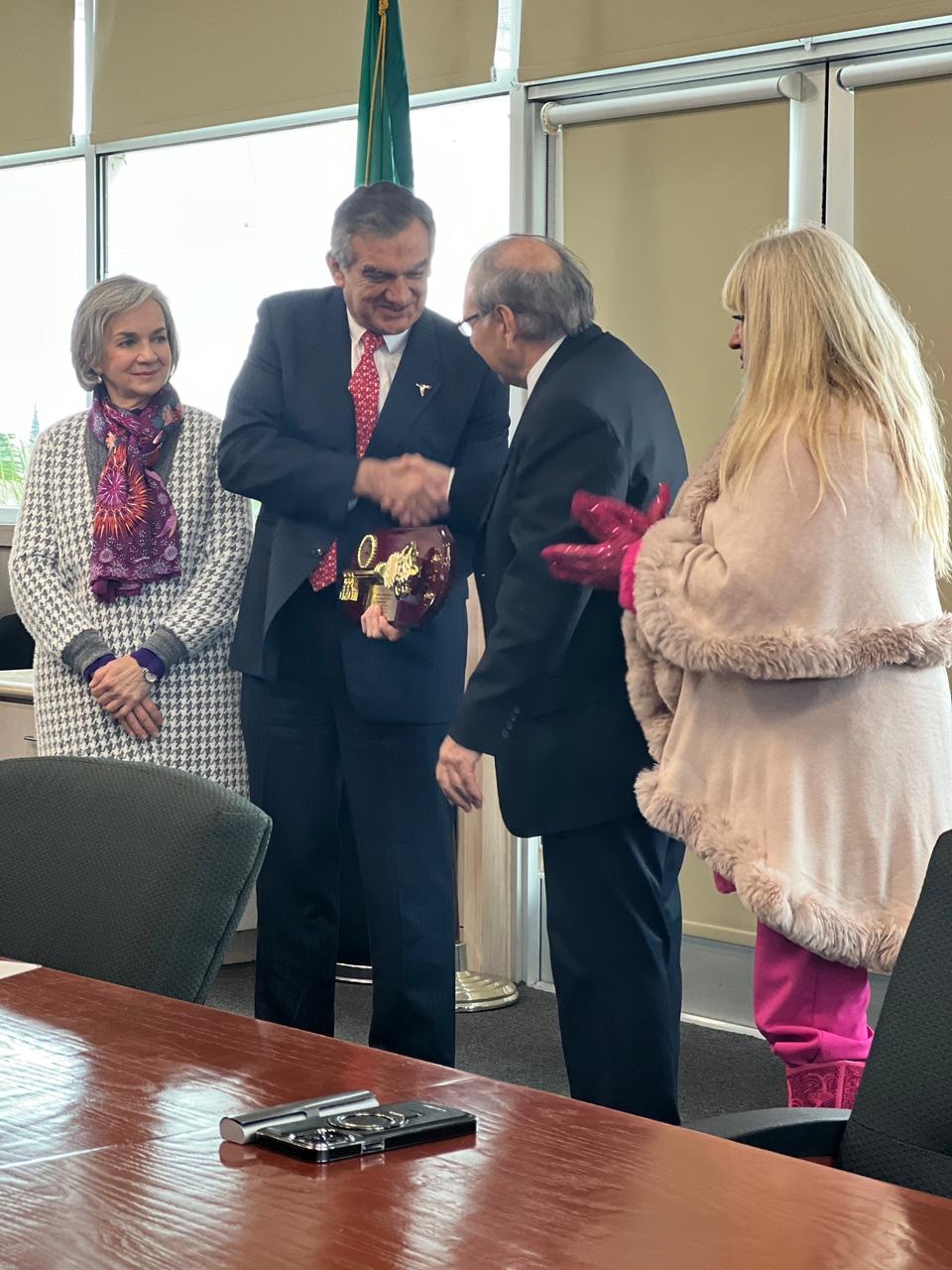 Al recibir de manos del alcalde de Laredo, Texas, Víctor Treviño, las «Llaves de la Ciudad» y acompañado por la presidenta del DIF Estatal, doctora María de Villarreal y de la alcaldesa de Nuevo Laredo, Carmen Lilia Canturosas, el gobernador de Tamaulipas llamó a seguir fortaleciendo la relación bilateral entre ambas comunidades.