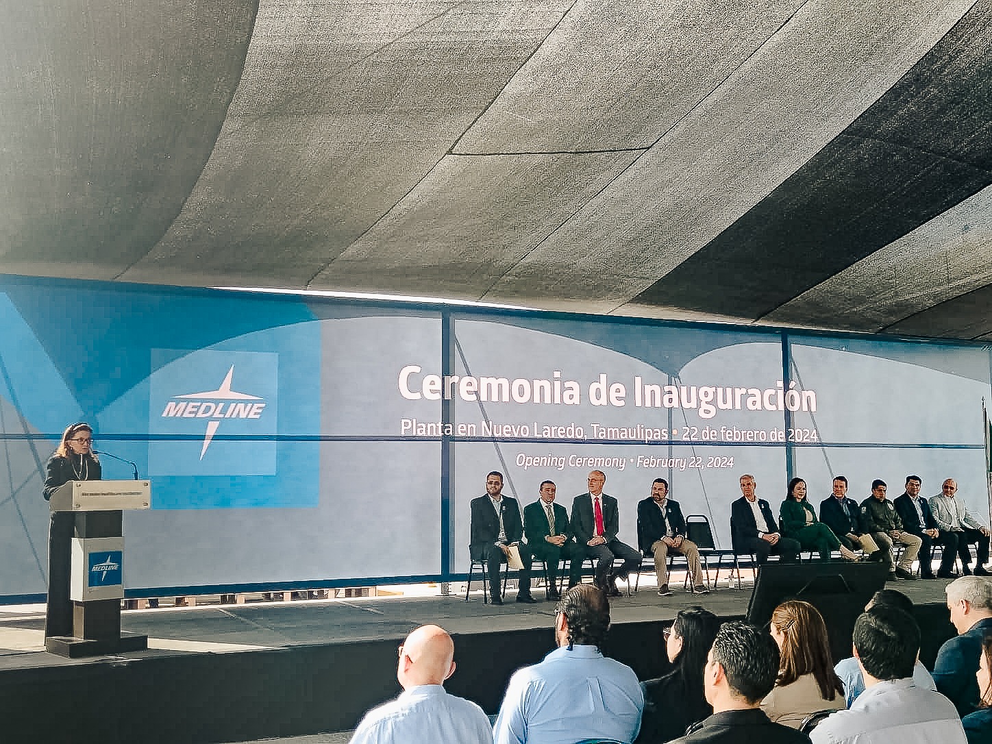 En la inauguración de la nueva planta Medline Hudson RCI estuvieron presentes la presidenta municipal de Nuevo Laredo, Carmen Lilia Canturrosas y por parte de Medline, Tim Finnigan, General Manager; Joaquín Nacher, SR vicepresidente de Operaciones y Aaron Palomares, director de Operaciones.