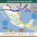Pronóstico a 48 horas de Sistemas Meteorológicos. Período de validez de las 08:00 horas del viernes 17 a las 08:00 horas del sábado 18 de mayo de 2024