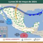 - Lluvias aisladas (0.1 a 5 mm): Tamaulipas, San Luis Potosí, Michoacán, Hidalgo, Tlaxcala, Ciudad de México, Morelos y Quintana Roo.
