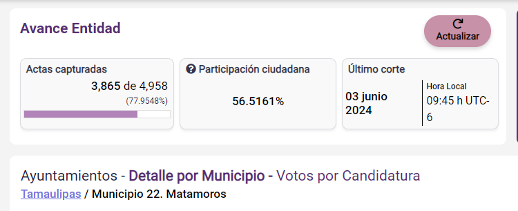 Ver el conteo actual: https://prep2024tamps.mx/ayuntamientos/detalle/votos-candidatura/matamoros
