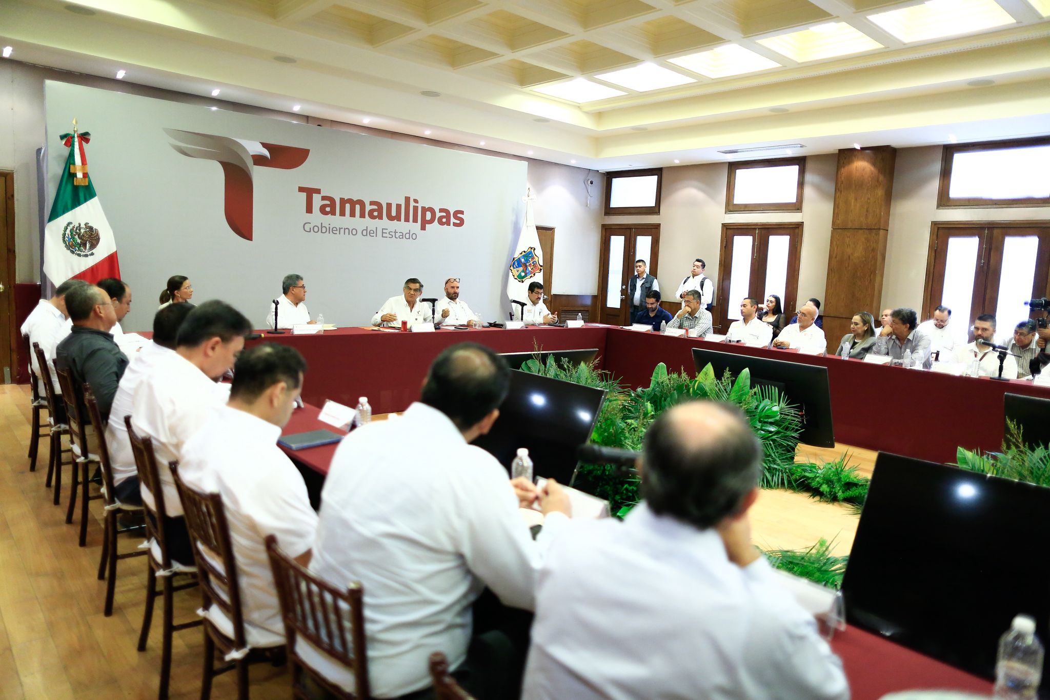 En esta mesa de trabajo, también participaron por parte del gobierno del estado, el secretario de Recursos Hidráulicos para el Desarrollo Social, Raúl Quiroga Álvarez; la secretaria de Economía, Ninfa Cantú Deándar; el jefe de la Oficina del Gobernador, Ricardo Guerrero; además del alcalde de Altamira, Armando Martínez Manríquez; el director general del Organismo de Cuenca Golfo Norte de Conagua, Jaime Gudiño Zárate; el rector de la Universidad Autónoma de Tamaulipas, Dámaso Anaya Alvarado y el encargado de despacho de la delegación de SEMARNAT, Horacio Del Ángel Castillo, entre otros.