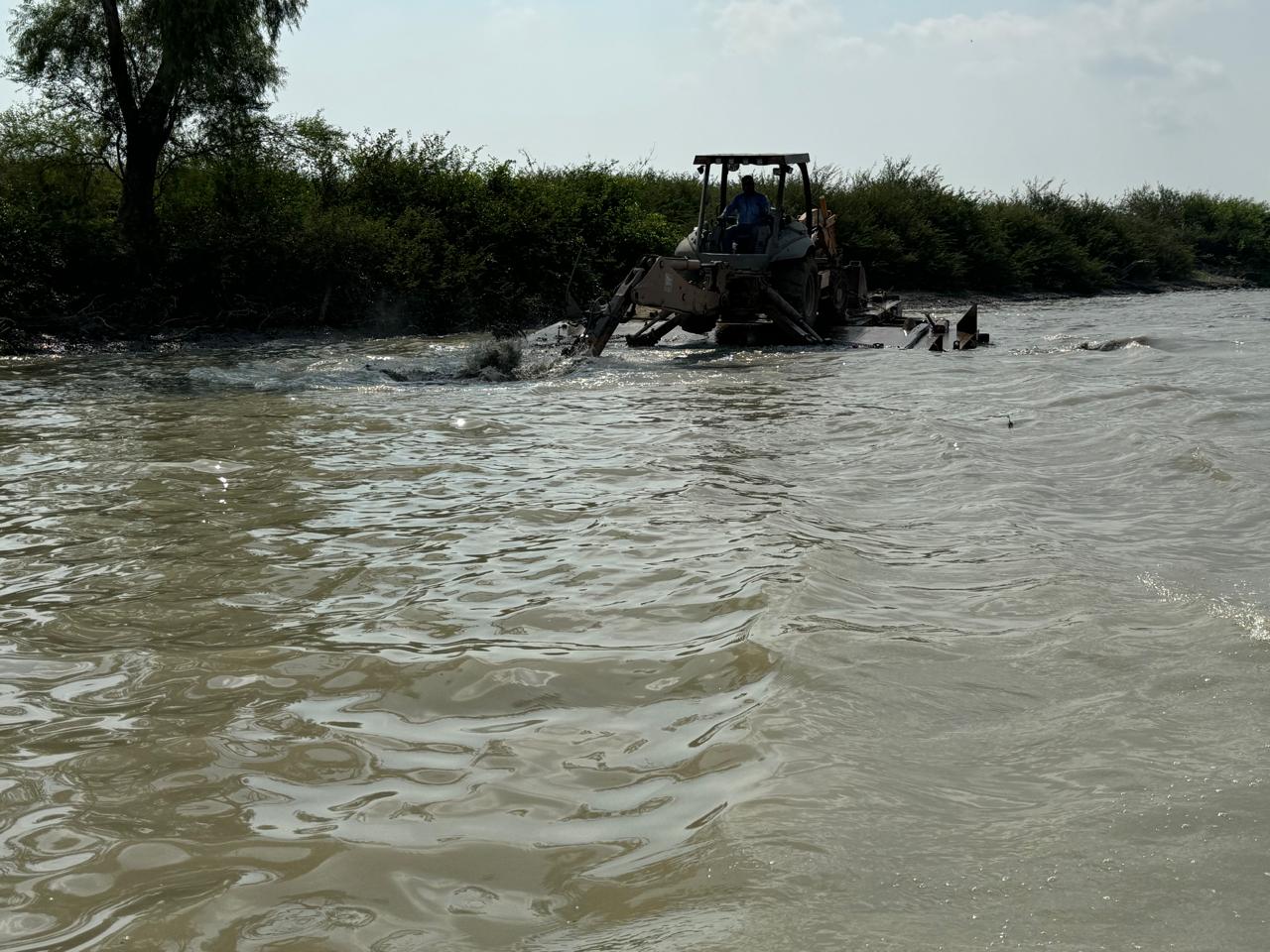 El mandatario tamaulipeco constató el extraordinario trabajo de desazolve que realizan cinco excavadoras, gracias a lo cual se evitó la paralización total del sistema lagunario.