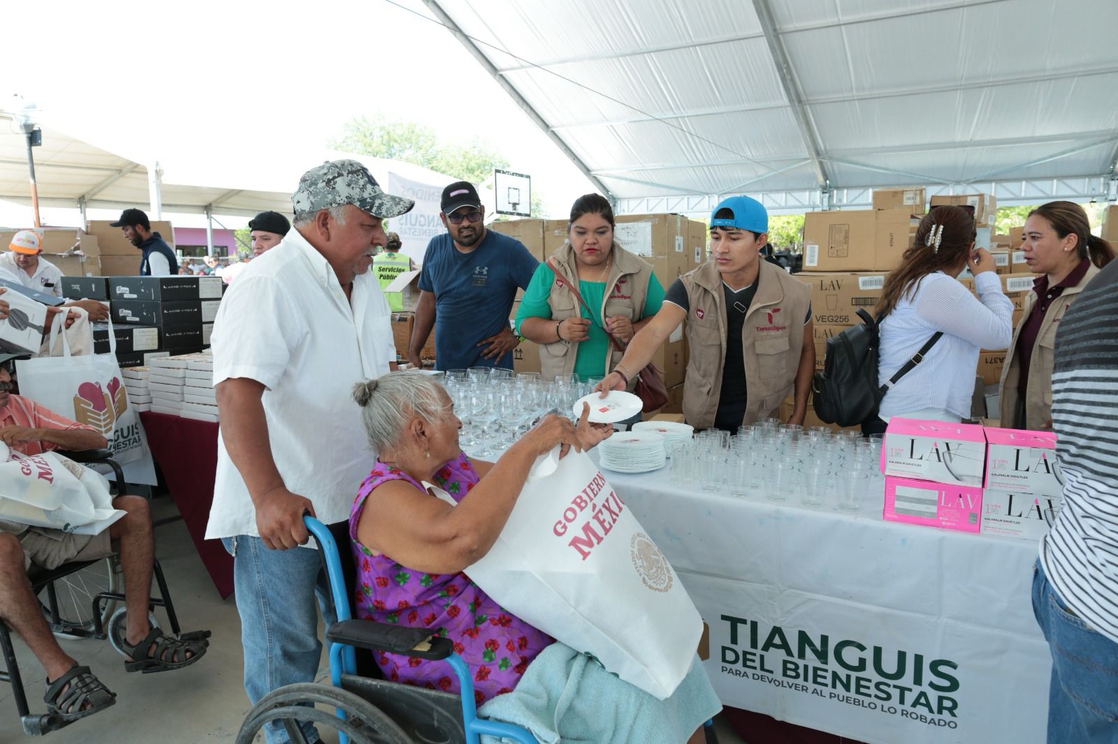 Por su parte, la presidenta del DIF Estatal también agradeció al presidente López Obrador por haber enviado este tianguis a Tamaulipas, así como las gestiones de la secretaría de Seguridad y Protección Ciudadana, Rosa Icela Rodríguez.