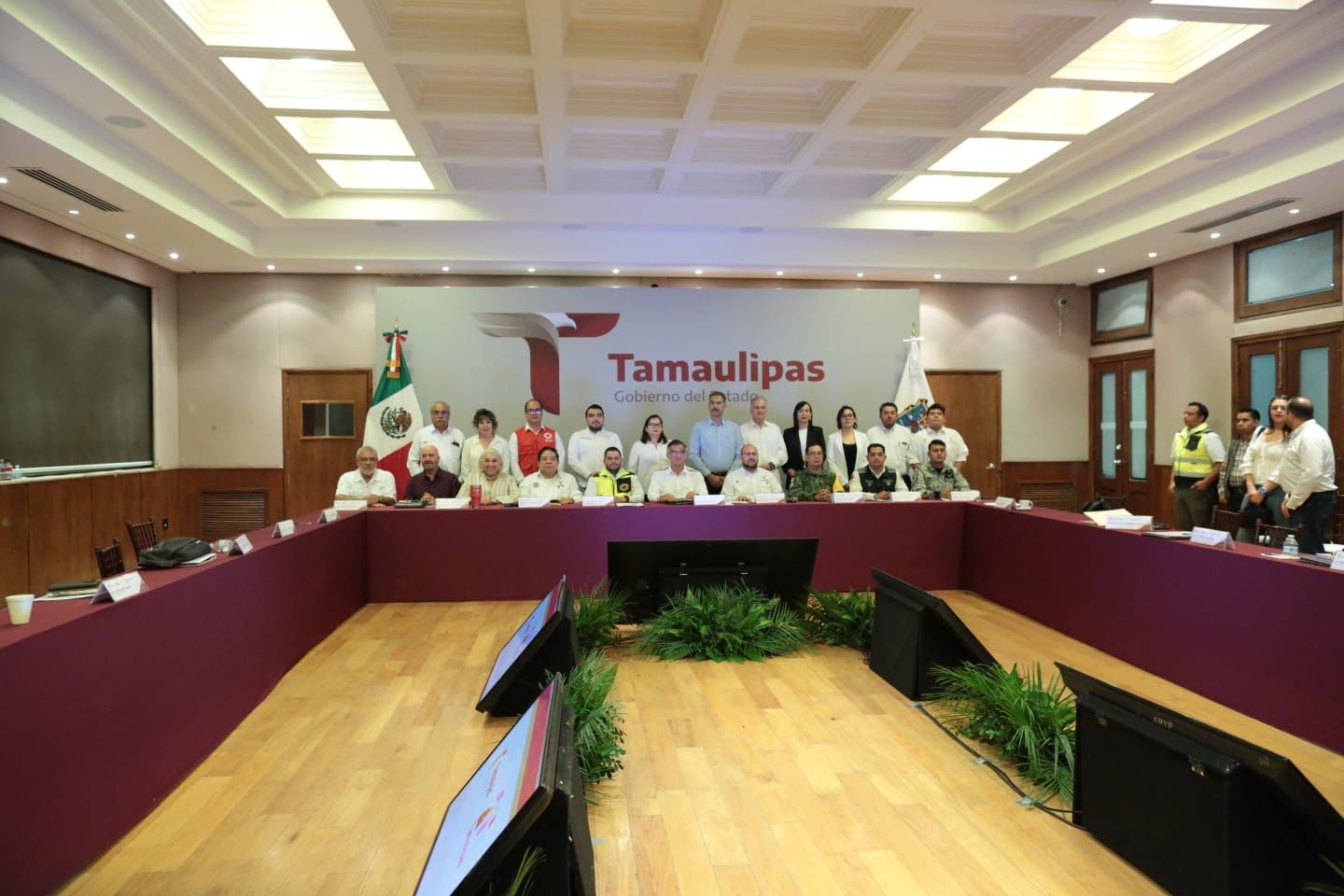 Al presidir la sesión extraordinaria del Consejo Estatal de Protección Civil, la noche de este lunes en el Salón Independencia de Palacio de Gobierno, el gobernador del Estado llamó a la población a estar debidamente informada y atenta al desarrollo del fenómeno meteorológico que, de acuerdo al último reporte del Sistema Meteorológico Nacional, podría ingresar a Tamaulipas tocando tierra como tormenta tropical entre los municipios de Soto la Marina y San Fernando, durante la noche del miércoles o madrugada del jueves.