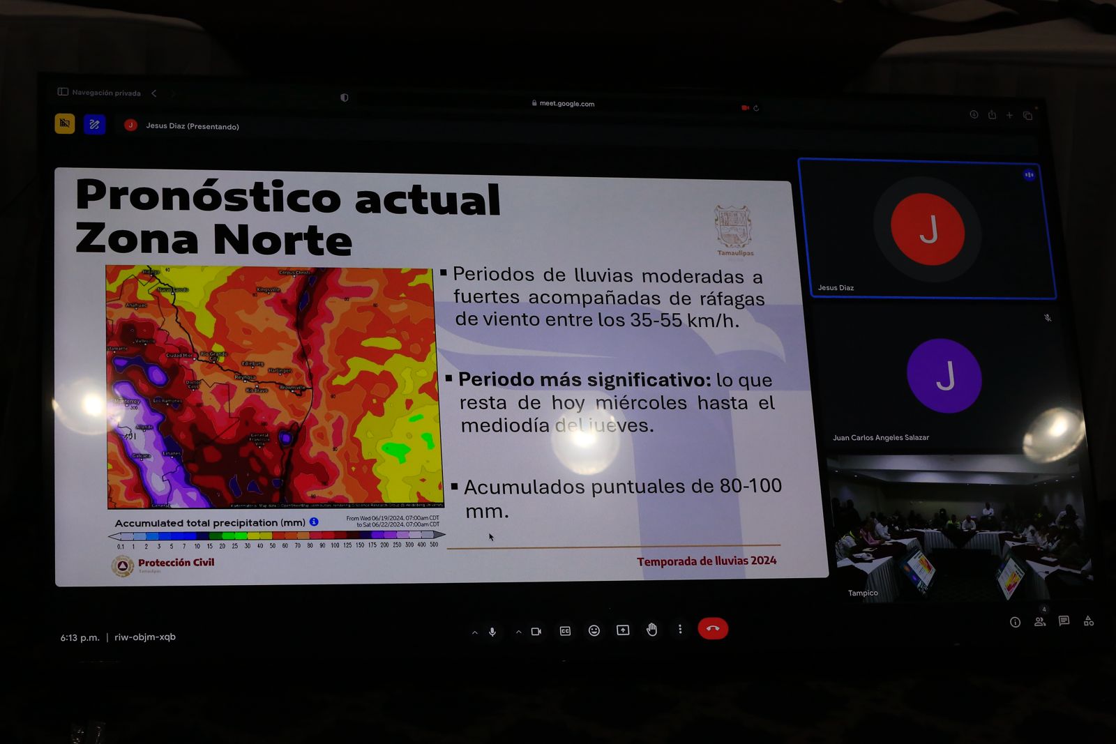 En la reunión se destacó el trabajo coordinado de dependencias de los tres niveles de gobierno para estar atentos y tomar todas las previsiones ante el desarrollo de la tormenta tropical Alberto, a fin de garantizar la seguridad e integridad de los tamaulipecos.