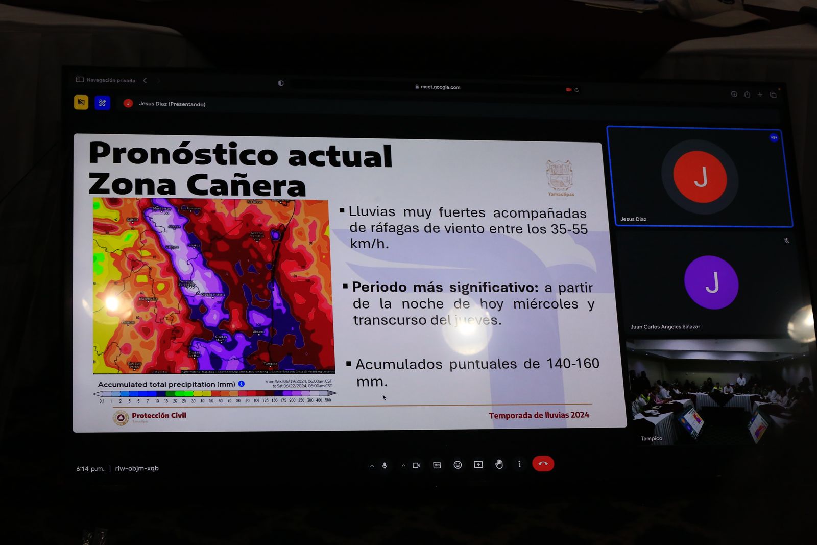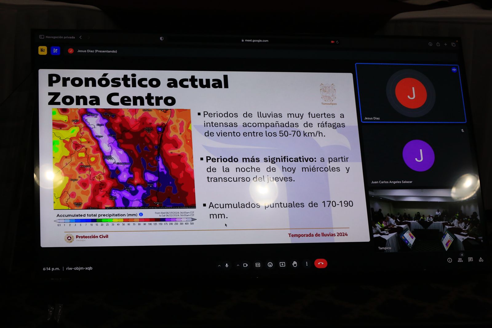 En la reunión se destacó el trabajo coordinado de dependencias de los tres niveles de gobierno para estar atentos y tomar todas las previsiones ante el desarrollo de la tormenta tropical Alberto, a fin de garantizar la seguridad e integridad de los tamaulipecos.