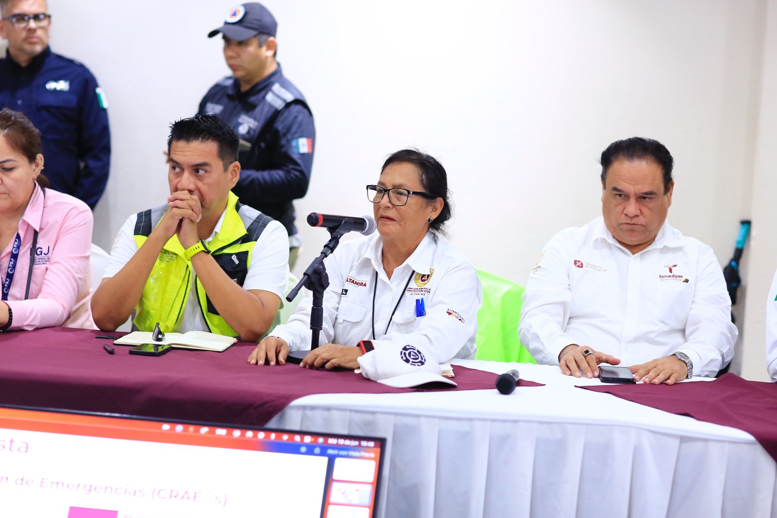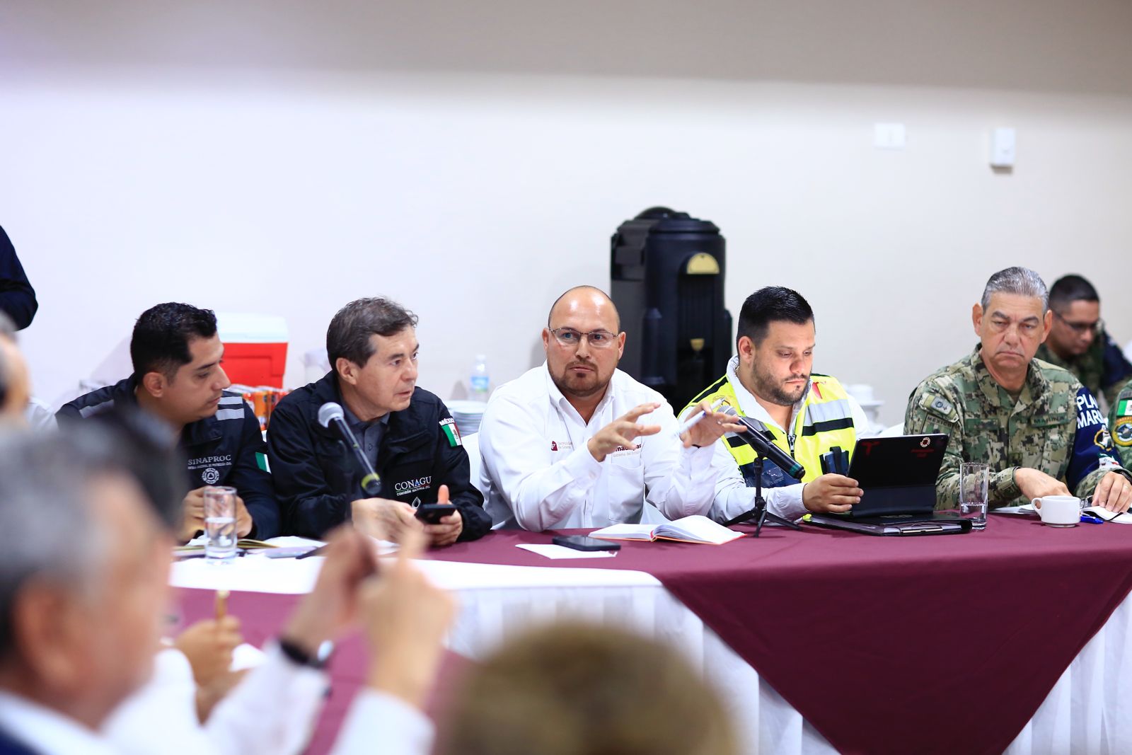 El secretario general de Gobierno estuvo acompañado por el secretario de Recursos Hidráulicos del Estado, Raúl Quiroga Álvarez y por el coordinador estatal de Protección Civil, Luis Gerardo González De la Fuente, así como por mandos de la SEDENA, Marina, Guardia Nacional, Guardia Estatal y representantes de la Coordinación Nacional de Protección Civil y de la Comisión Nacional del Agua.
