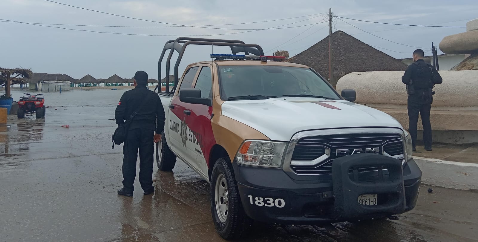 En el caso de La Pesca, efectivos de esta corporación policial mantienen proximidad con dueños de palapas en este sitio turístico, quienes solo presentaron daños materiales en las mismas, sin personas lesionadas.