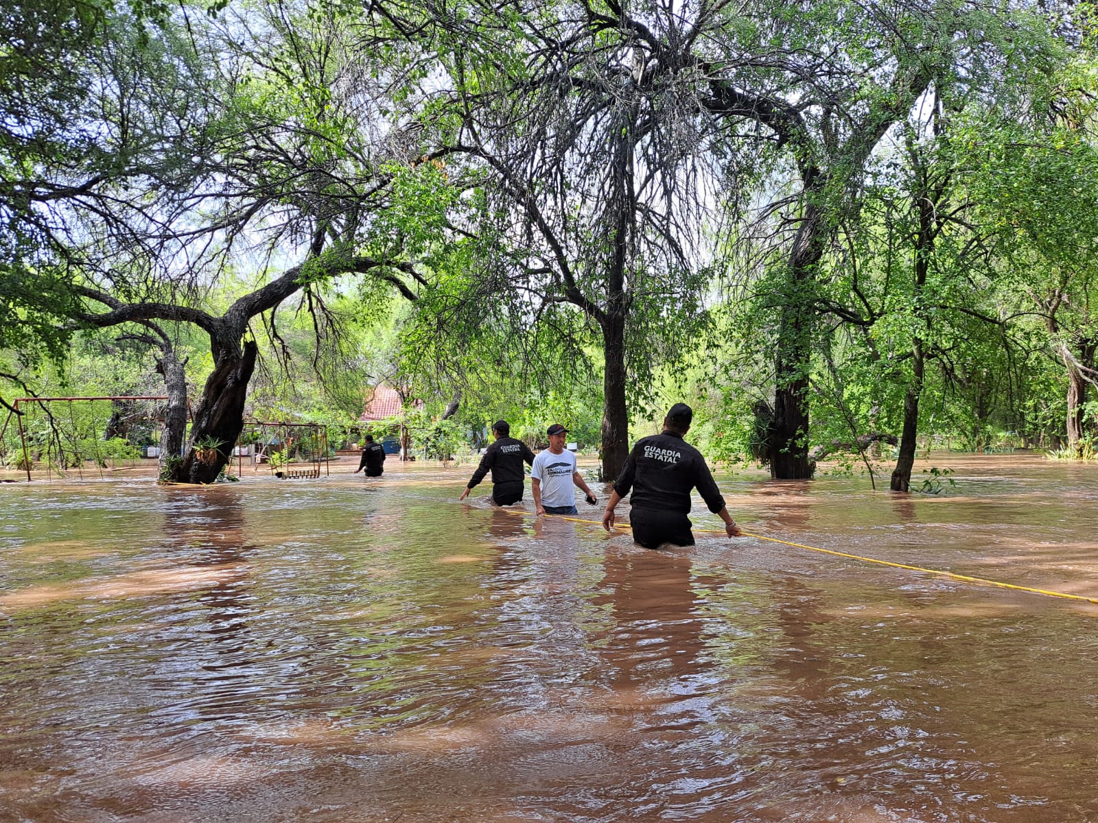 Dentro de las actividades realizadas por el Plan Tamaulipas de la Guardia Estatal se brindó auxilio a la ciudadanía residente del ejido Miraflores del municipio de Güémez, tras el desbordamiento del río Corona por las lluvias derivadas de la depresión tropical Alberto.
