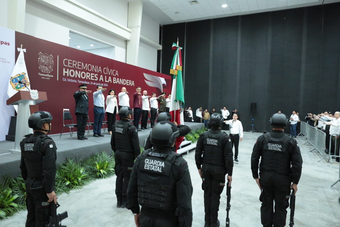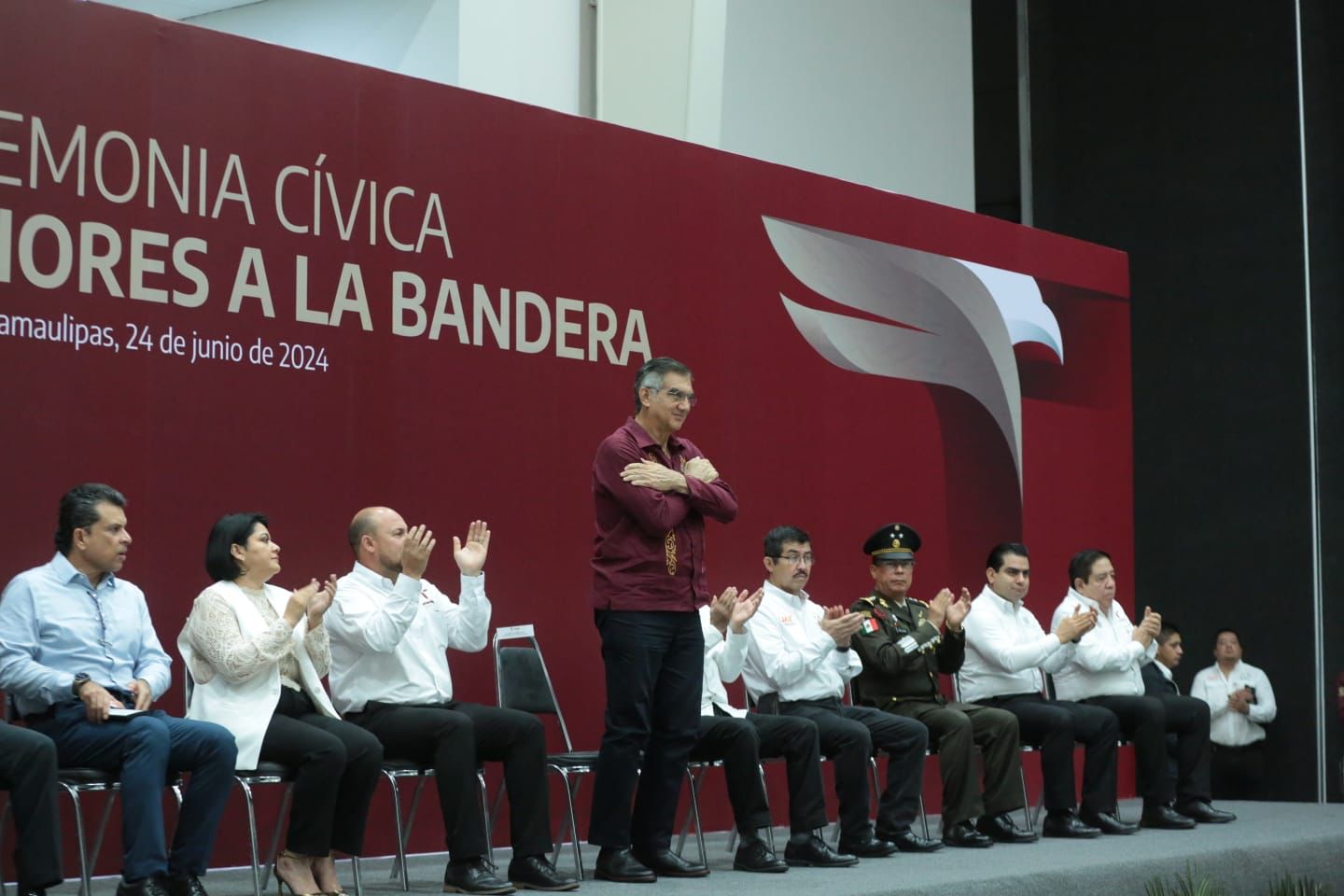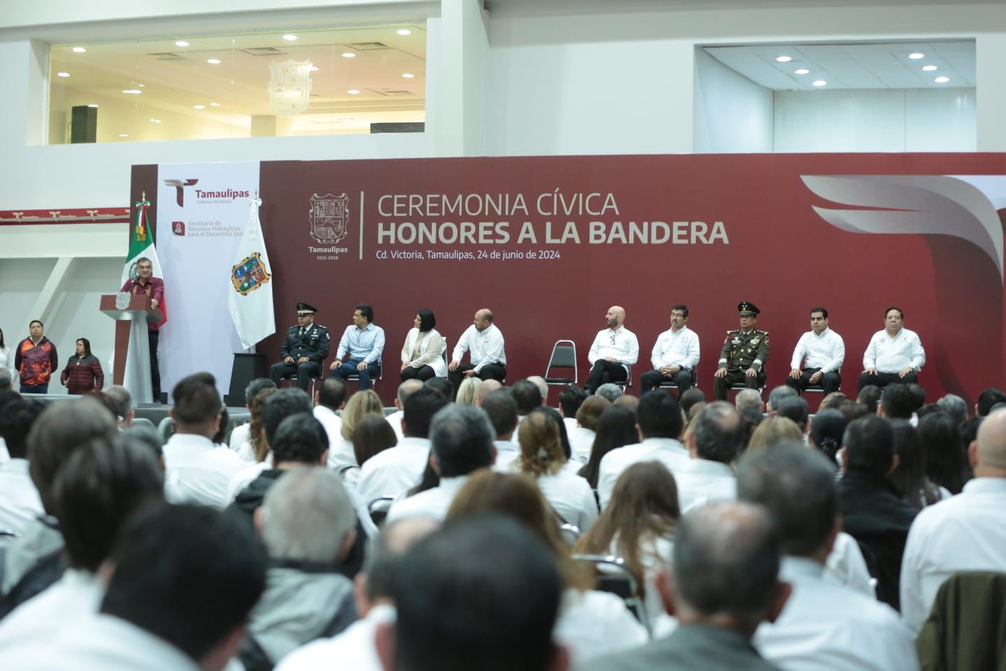 Al presidir este lunes la ceremonia cívica de honores en el Polyforum de esta capital, el gobernador del estado reconoció a los directivos presentes de los Distritos de Riego 092 Las Ánimas y 02 de El Mante, así como del Distrito Pujal Coy de Ébano, San Luis Potosí, por su colaboración que permitió superar la crisis hídrica que afectó al sur del estado.