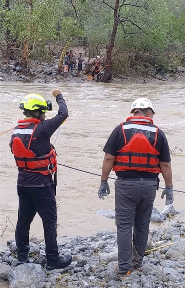 En la comunidad de El Carrizo del municipio de Jaumave, se llevó a cabo el rescate de tres adultos y un menor que habían quedado incomunicados debido a la crecida del Río Chihue.