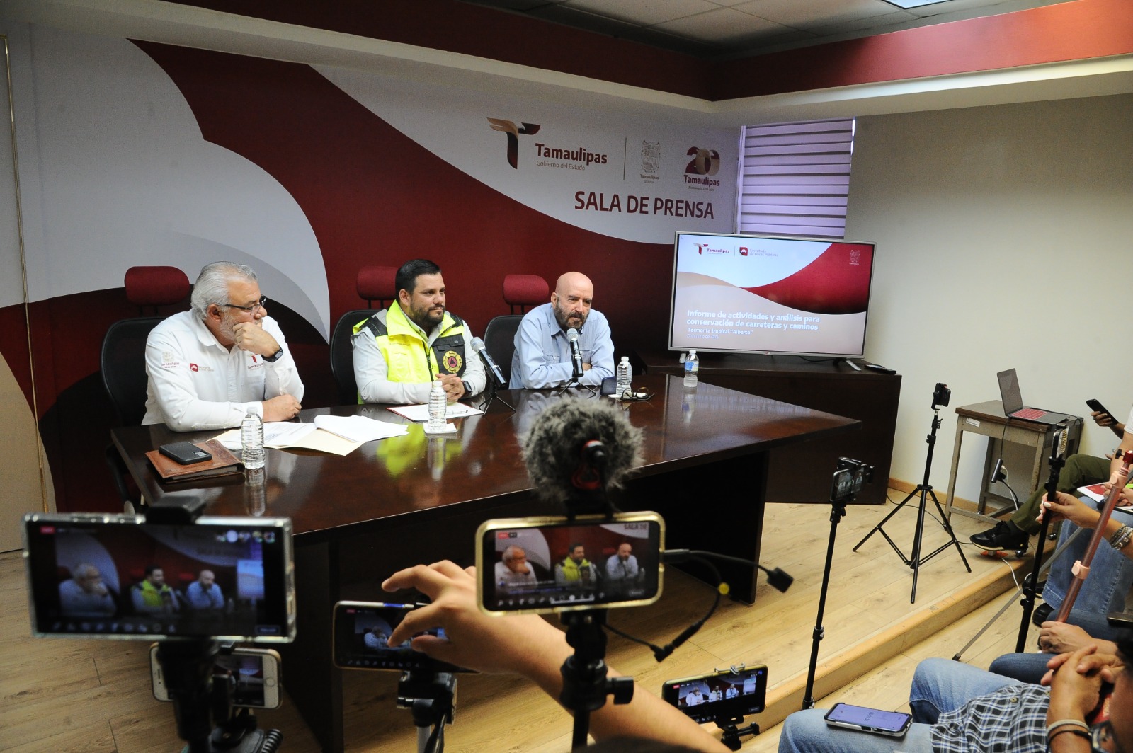En rueda de prensa conjunta, los secretarios: de Obras Públicas, Pedro Cepeda Anaya y de Recursos Hidráulicos para el Desarrollo Social, Raúl Quiroga Álvarez, junto con el coordinador estatal de Protección Civil, Luis Gerardo González de la Fuente, brindaron un informe detallado de las acciones realizadas antes, durante y después de la tormenta que permitió evitar que hubiera más afectaciones a la población, tal y como lo indicó el gobernador Américo Villarreal Anaya.