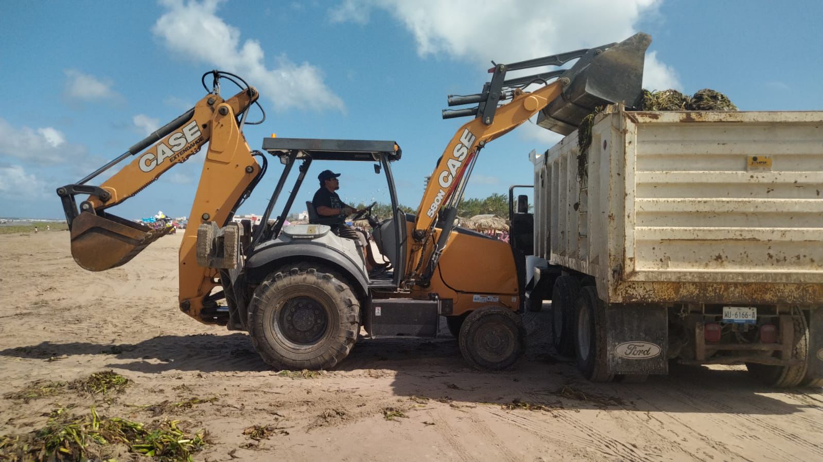 Para contrarrestar la presencia del lirio acuático en la playa Miramar de Ciudad Madero, la Secretaría de Turismo de Tamaulipas dispuso de cuatro camiones y dos retroexcavadoras para la limpieza del lugar.