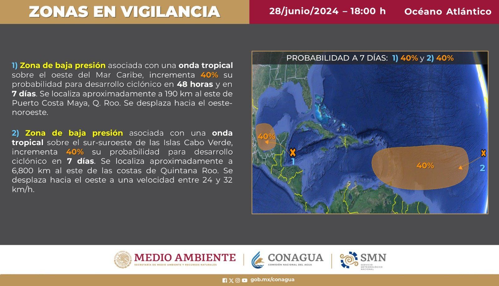 Actualmente, el Centro Nacional de Huracanes mantiene un 30 % de probabilidad de desarrollo a ciclón tropical durante el fin de semana.