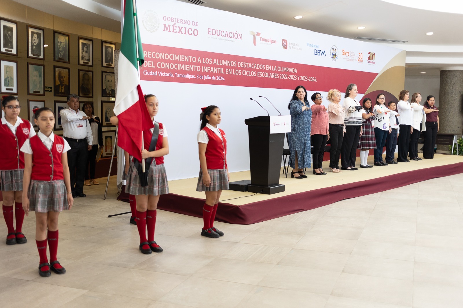 Las y los estudiantes tamaulipecos de sexto grado más destacados, así como sus maestras y maestros, fueron reconocidos por obtener los mejores resultados en la Evaluación Estatal ‘Tamaulipas Aprende’ durante los ciclos escolares 2022-2023 y 2023-2024, esto dentro del marco de la Olimpiada del Conocimiento Infantil.
