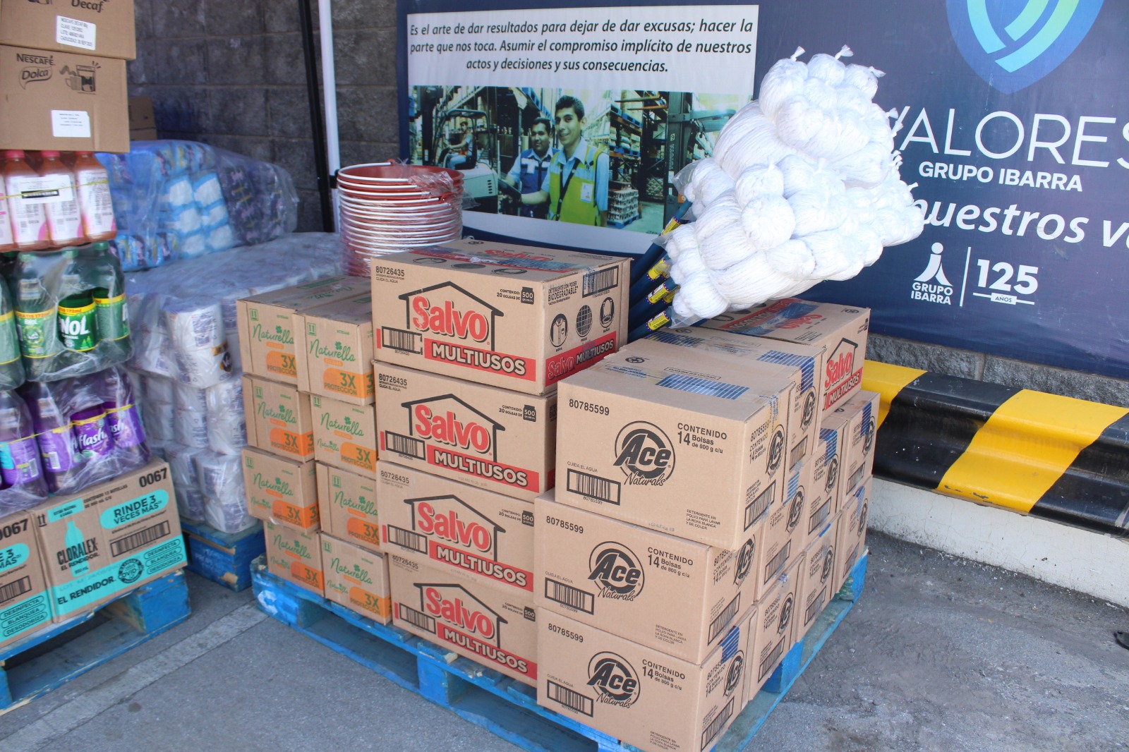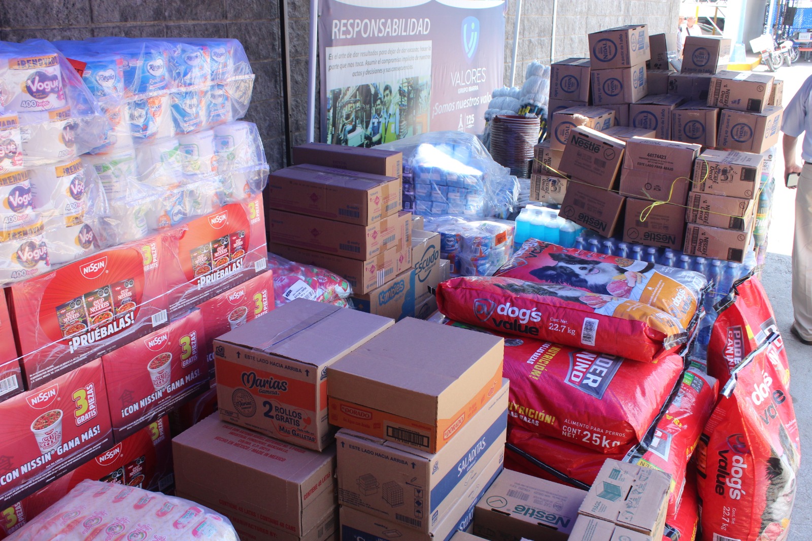 A estas se suman siete toneladas de víveres donados por Fundación Walmart, cinco toneladas y media de agua embotellada y leche por parte de FEMSA, más de 4 mil 500 productos alimenticios y de limpieza por Fundación Soriana y 3 mil 400 por parte de Grupo Ibarra.