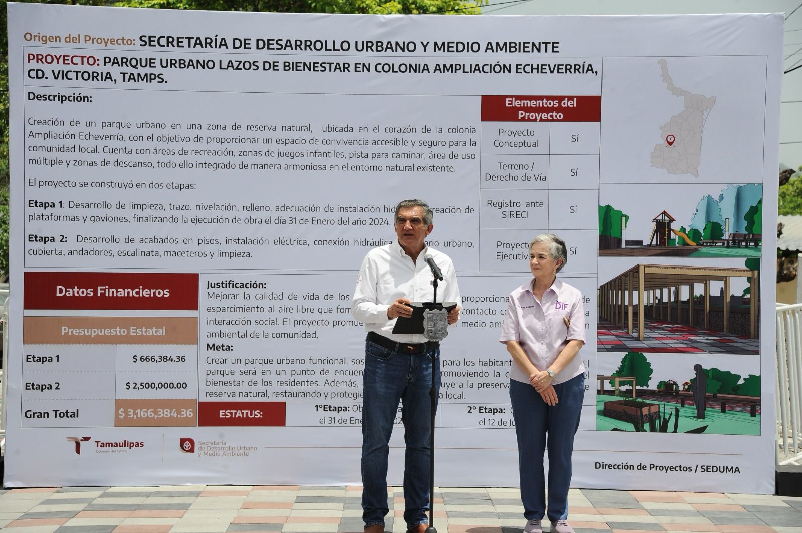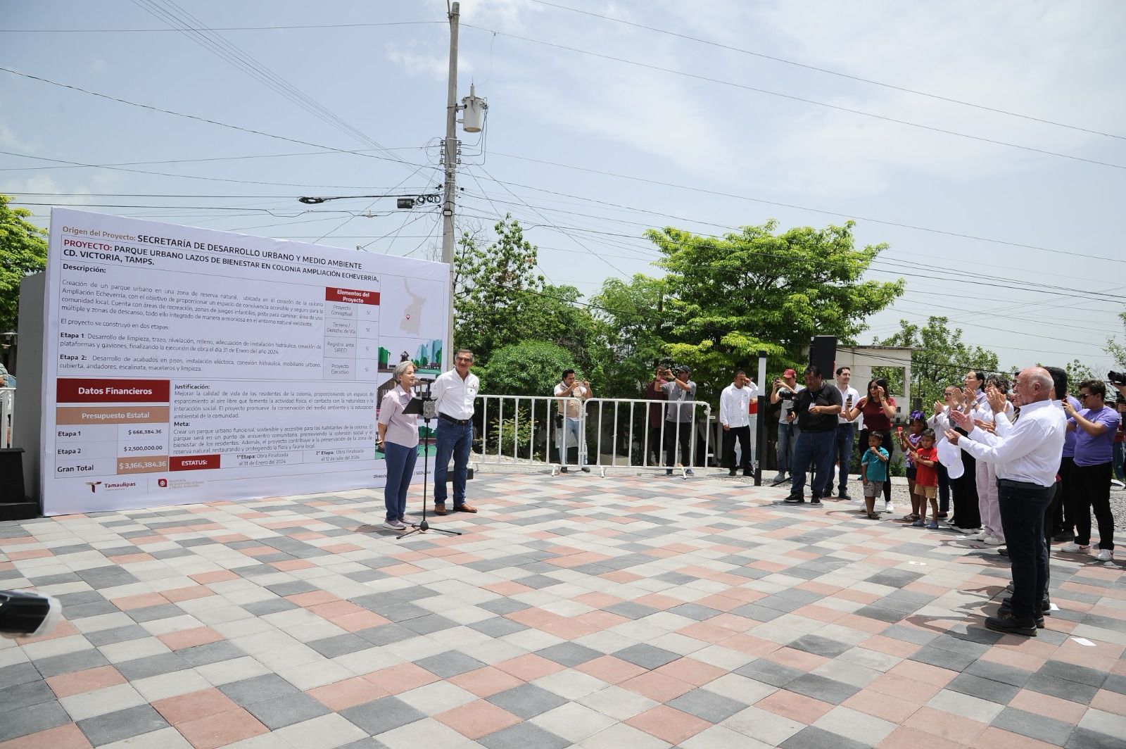 «Es un proyecto urbano que resume la colaboración entre los vecinos de la Colonia Ampliación Luis Echeverría, el Instituto Tamaulipeco de la Vivienda y Urbanismo, la Secretaría de Desarrollo Urbano y Medio Ambiente y el empeño e inspiración de nuestra querida doctora María de Villarreal, presidenta del sistema DIF Tamaulipas», explicó.
