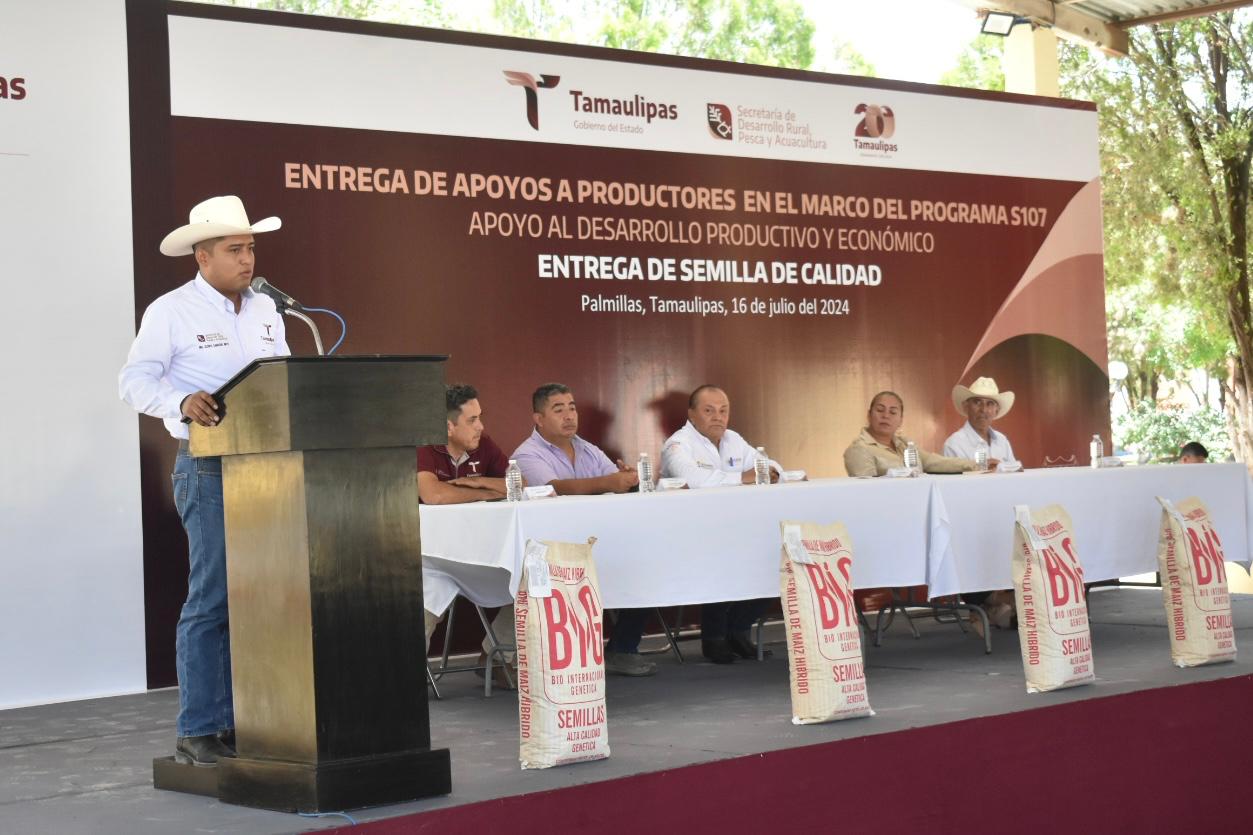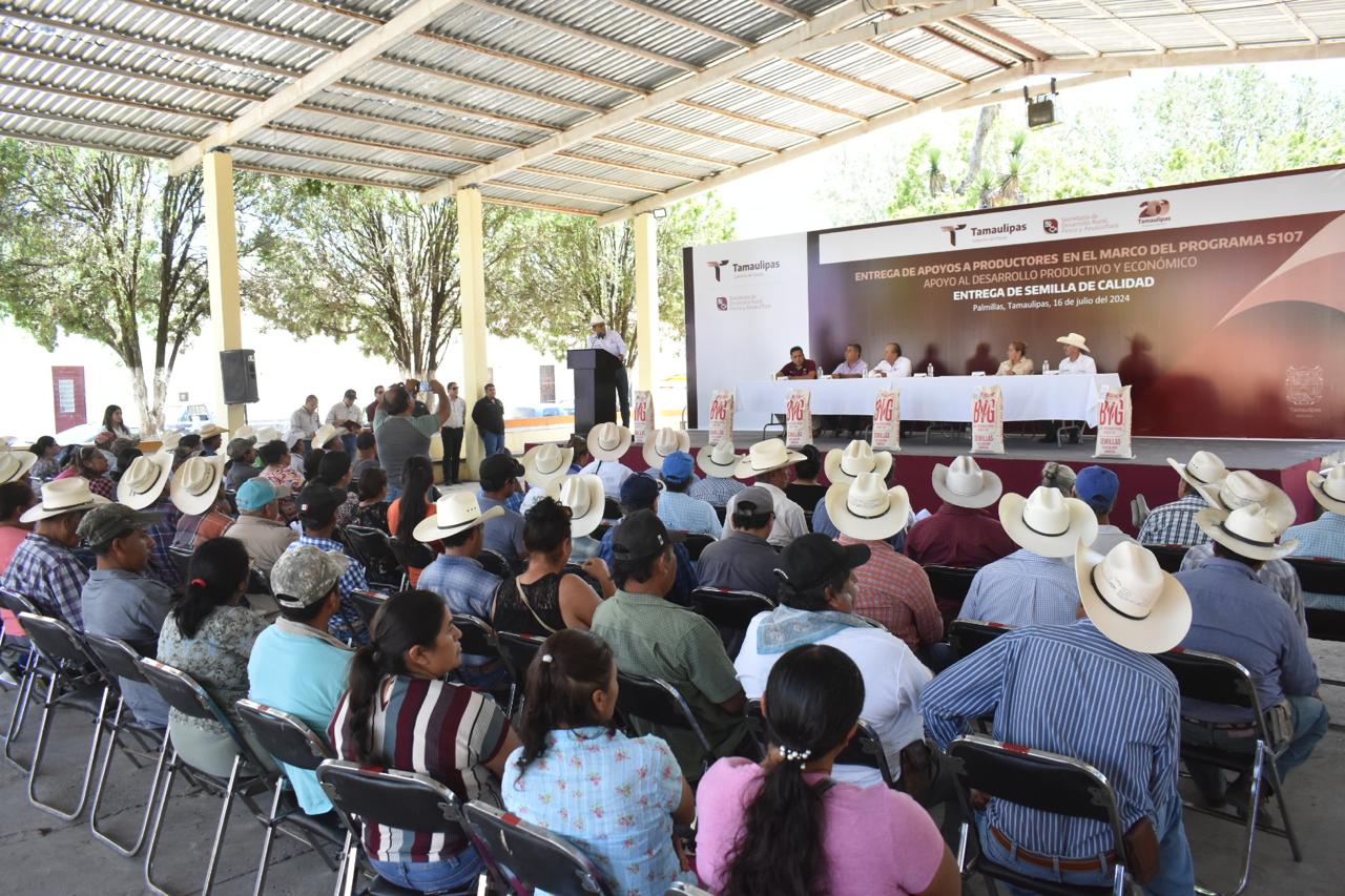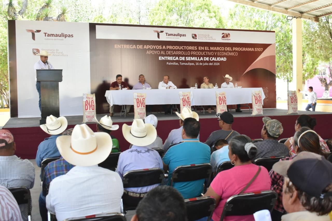 “Con la entrega de semilla de calidad de la variedad “Llera III”, que se otorgó en la cabecera municipal de Palmillas, se garantiza el abasto oportuno de alimentos a los sectores más necesitados, apoyando al sector campesino y así elevar su productividad y la autosuficiencia en alimentos básicos”, refirió.