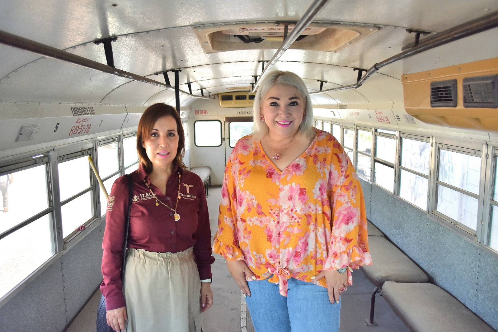 La secretaria de Finanzas del Gobierno de Tamaulipas, Adriana Lozano Rodríguez, realizó la donación de un autobús tipo escolar al Instituto Tamaulipeco de Capacitación para el Empleo (ITACE), misma que fue recibida por Claudia Anaya Alvarado, directora general de esta institución.