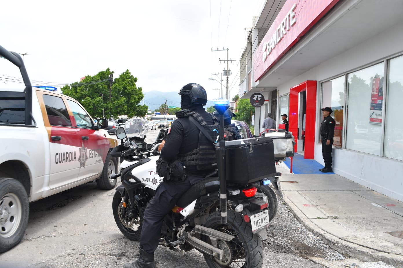 Durante el actual periodo vacacional, elementos de la Guardia Estatal incrementan la vigilancia y proximidad en bancos, cajeros y zonas peatonales para prevenir actos delictivos.