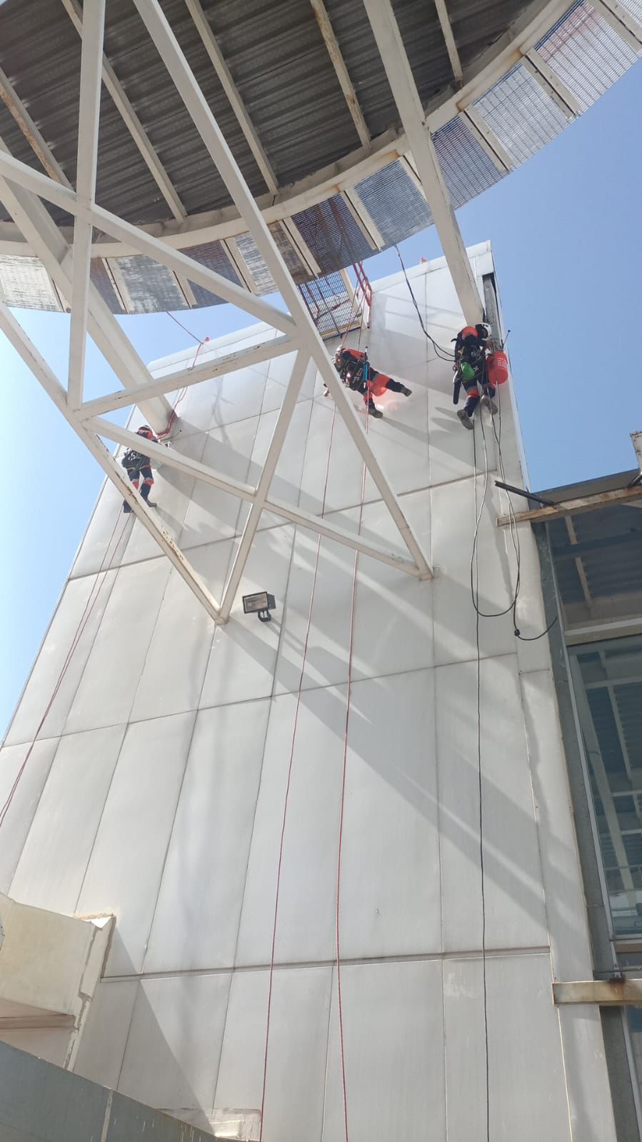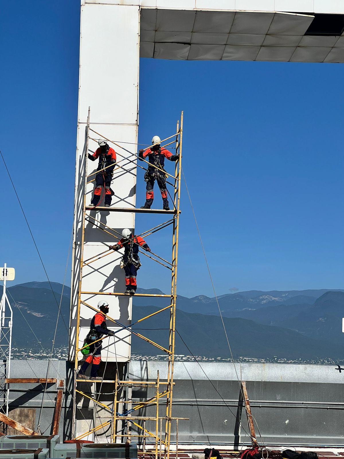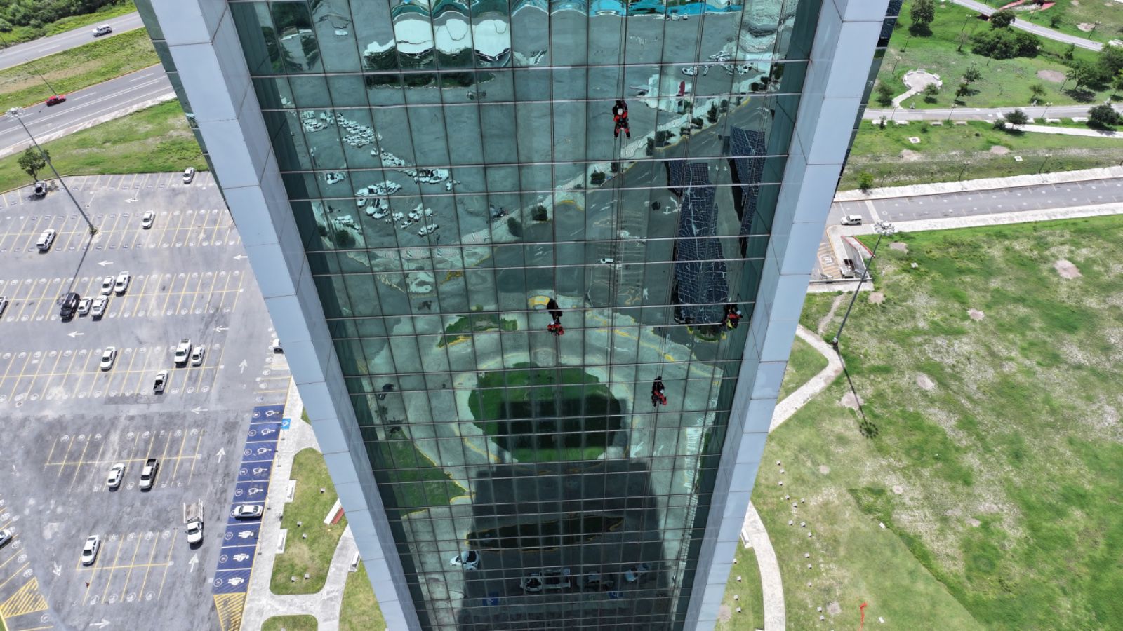 Las cuadrillas de trabajo, encabezadas por José Ángel Sevilla Morales, director general de Servicios, se encargan de hacer el cambio de láminas de la fachada de la Torre Bicentenario, con el fin de evitar daños en la estructura y mejorar la fachada principal del edificio. También se realiza el mantenimiento de los seis elevadores que dan servicio a los más de 2, 250 usuarios que diariamente asisten a esta torre gubernamental.