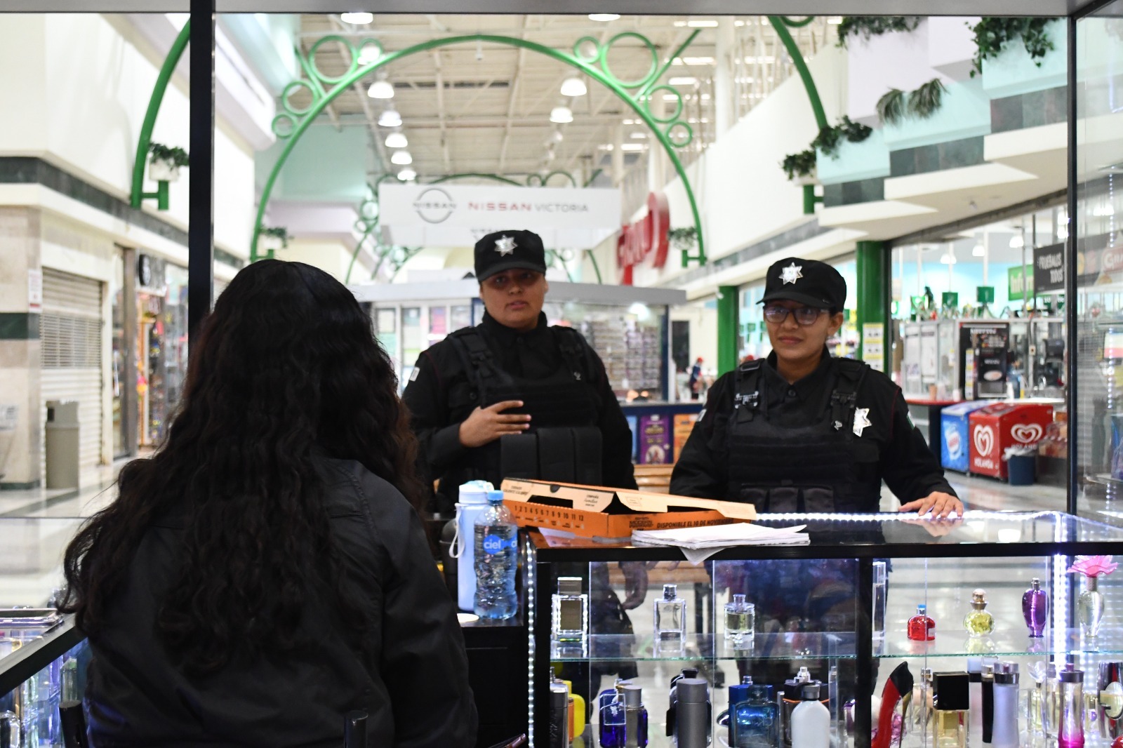 Debido a la alta afluencia de compradores, elementos de esta corporación realizan recorridos de seguridad y vigilancia en diferentes plazas y zonas comerciales.