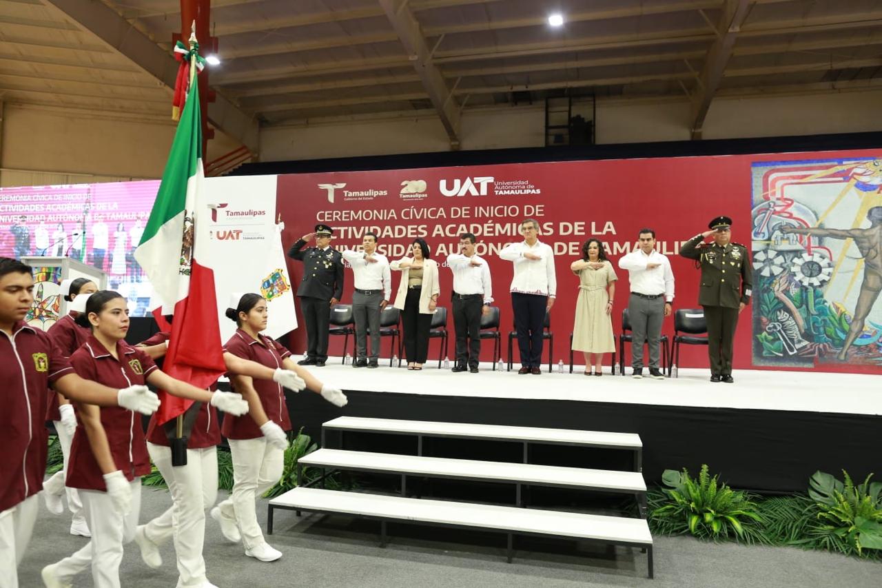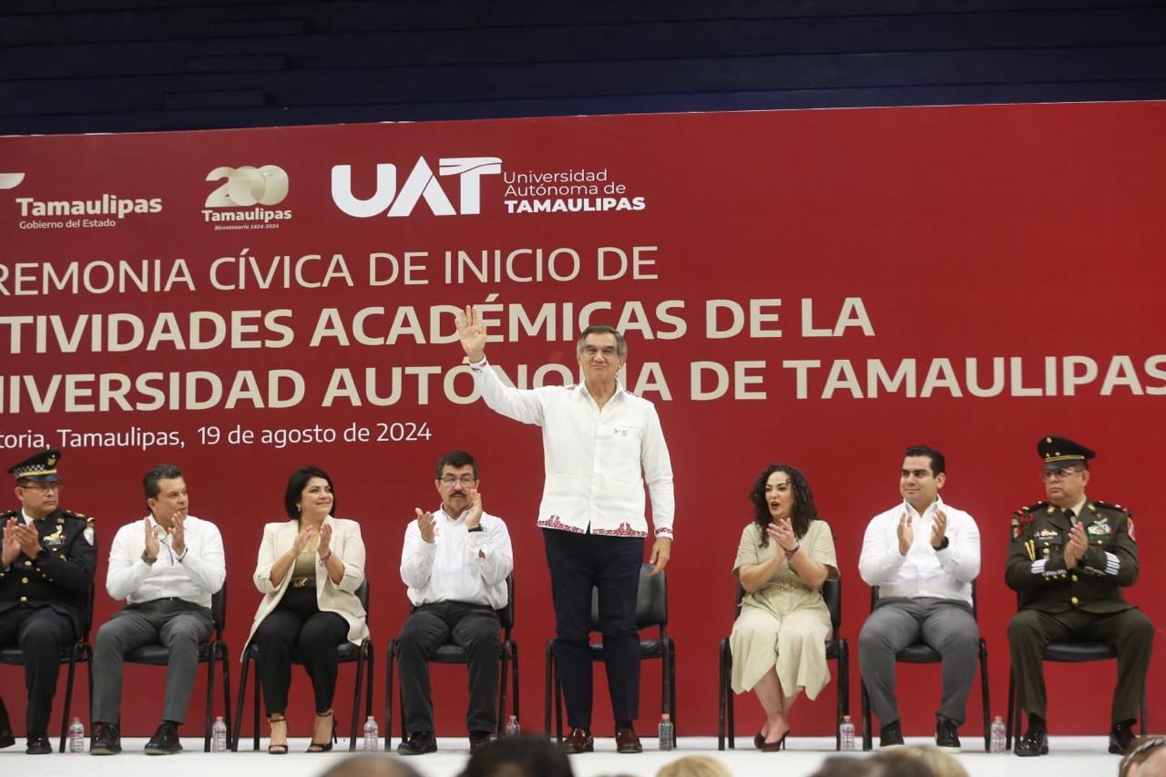 Al asistir a la ceremonia cívica de inicio de actividades académicas de la UAT, junto al rector Dámaso Anaya Alvarado, el gobernador refrendó todo su apoyo a la Máxima Casa de Estudios para lograr mayores oportunidades de desarrollo.