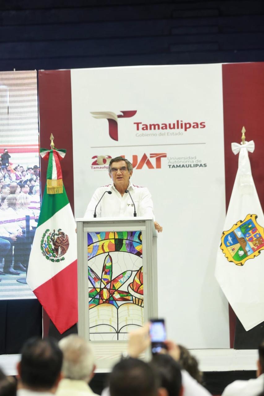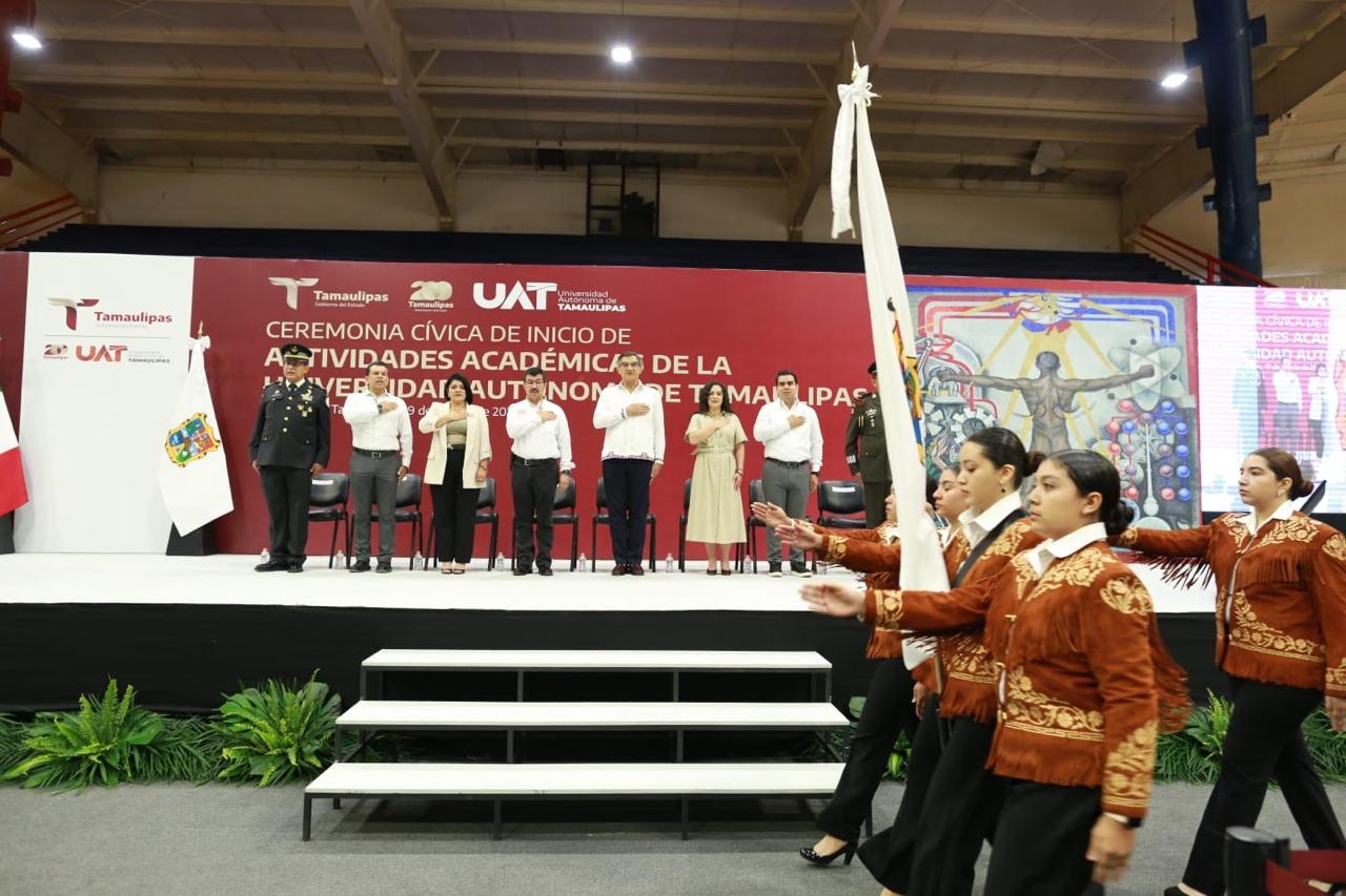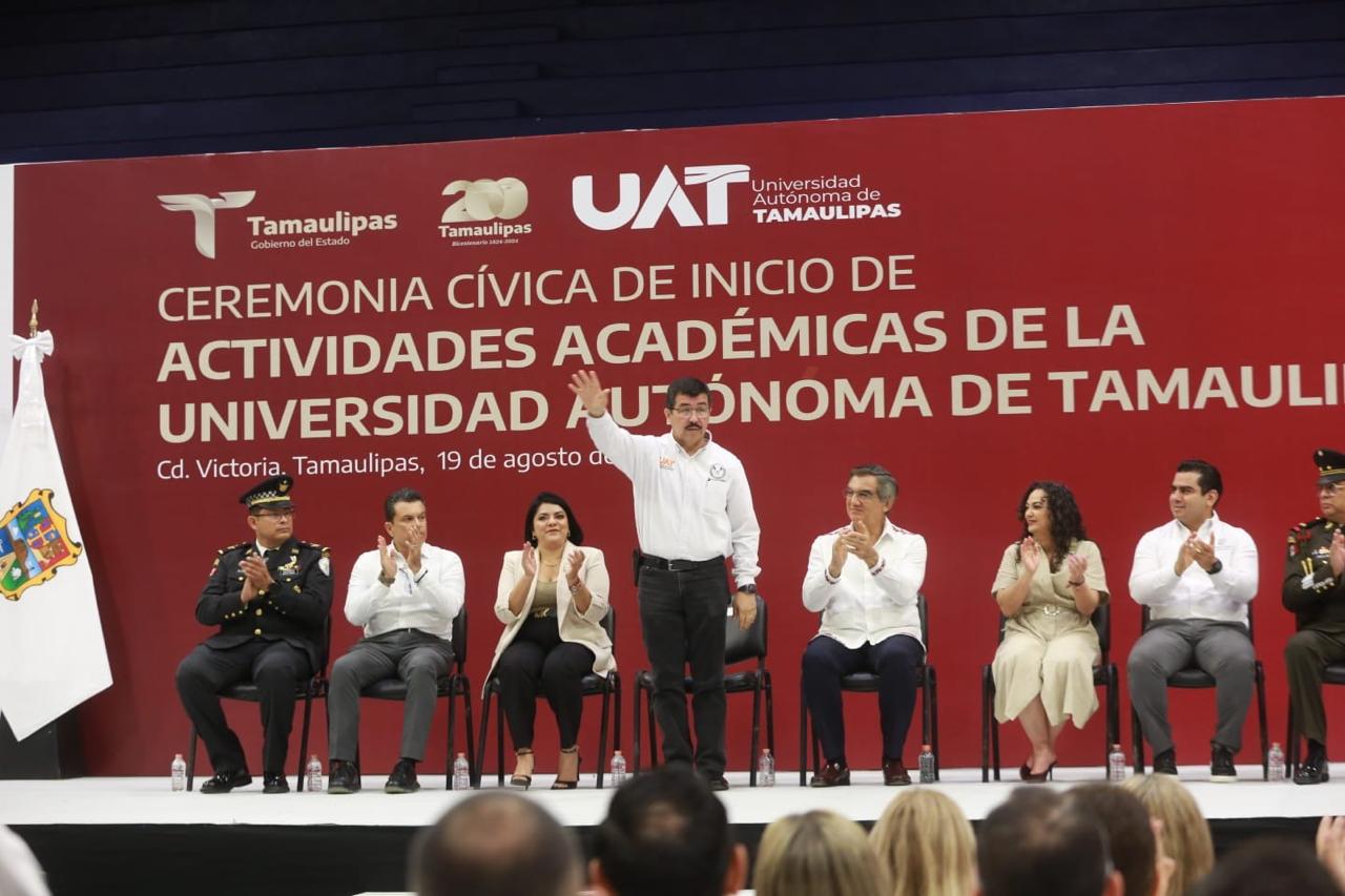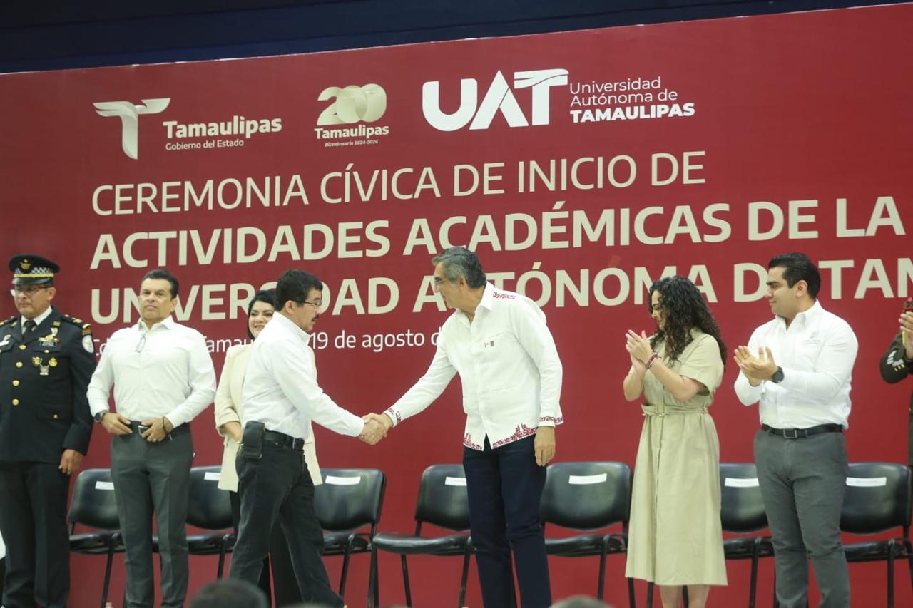 Al asistir a la ceremonia cívica de inicio de actividades académicas de la UAT, junto al rector Dámaso Anaya Alvarado, el gobernador refrendó todo su apoyo a la Máxima Casa de Estudios para lograr mayores oportunidades de desarrollo.