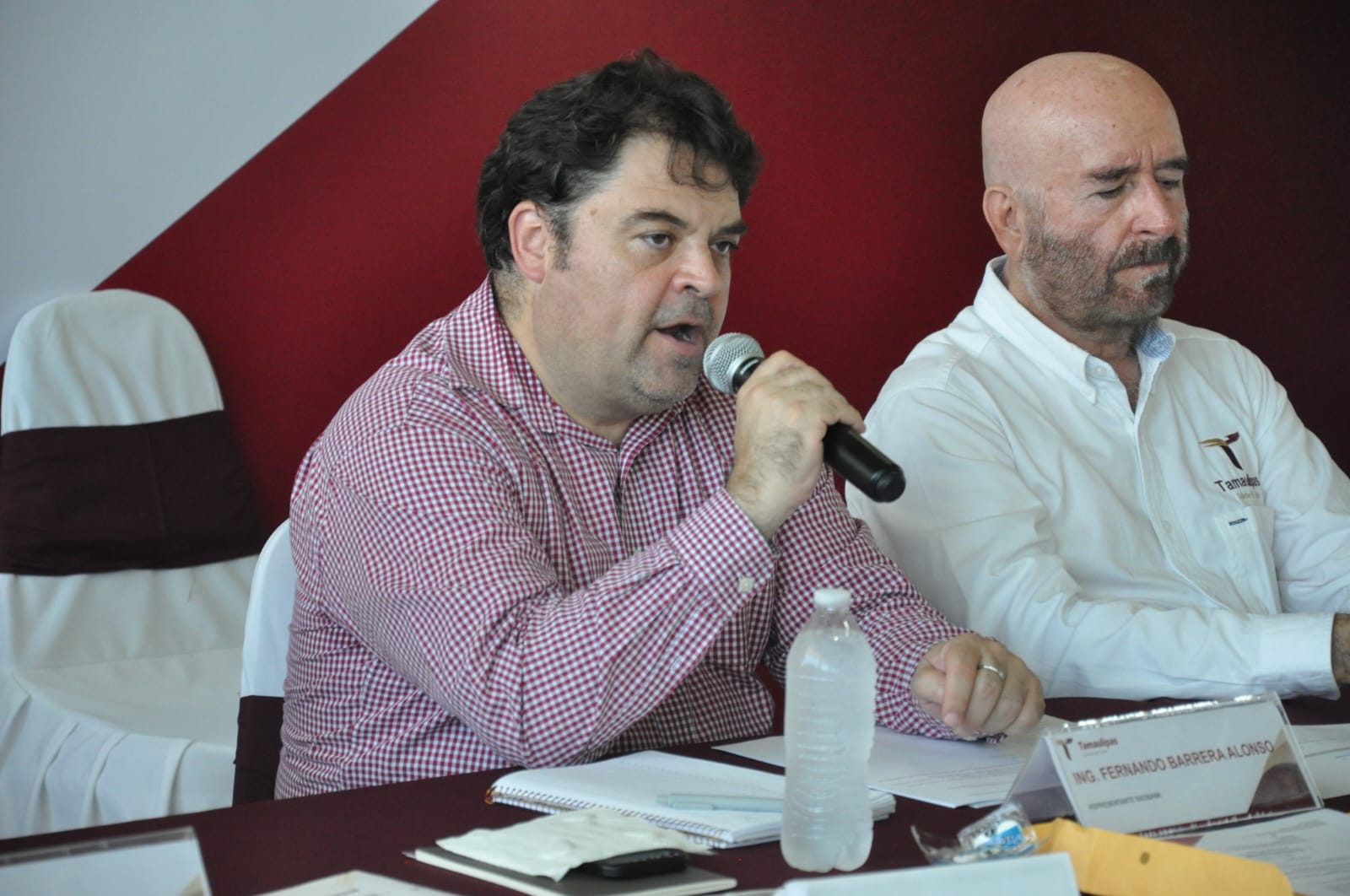 El secretario de Recursos Hidráulicos para el Desarrollo Social en Tamaulipas, Raúl Quiroga Álvarez, sostuvo una reunión con el representante del Banco Nacional de Desarrollo de América del Norte (NADBank), Fernando Barrera Alonso, el representante legal y director general de ALITEC, Francisco Ramón Tapia Mansilla y los gerentes de los diferentes organismos operadores del agua que se ubican dentro de la franja de 300 kilómetros de la frontera del Estado de Tamaulipas.