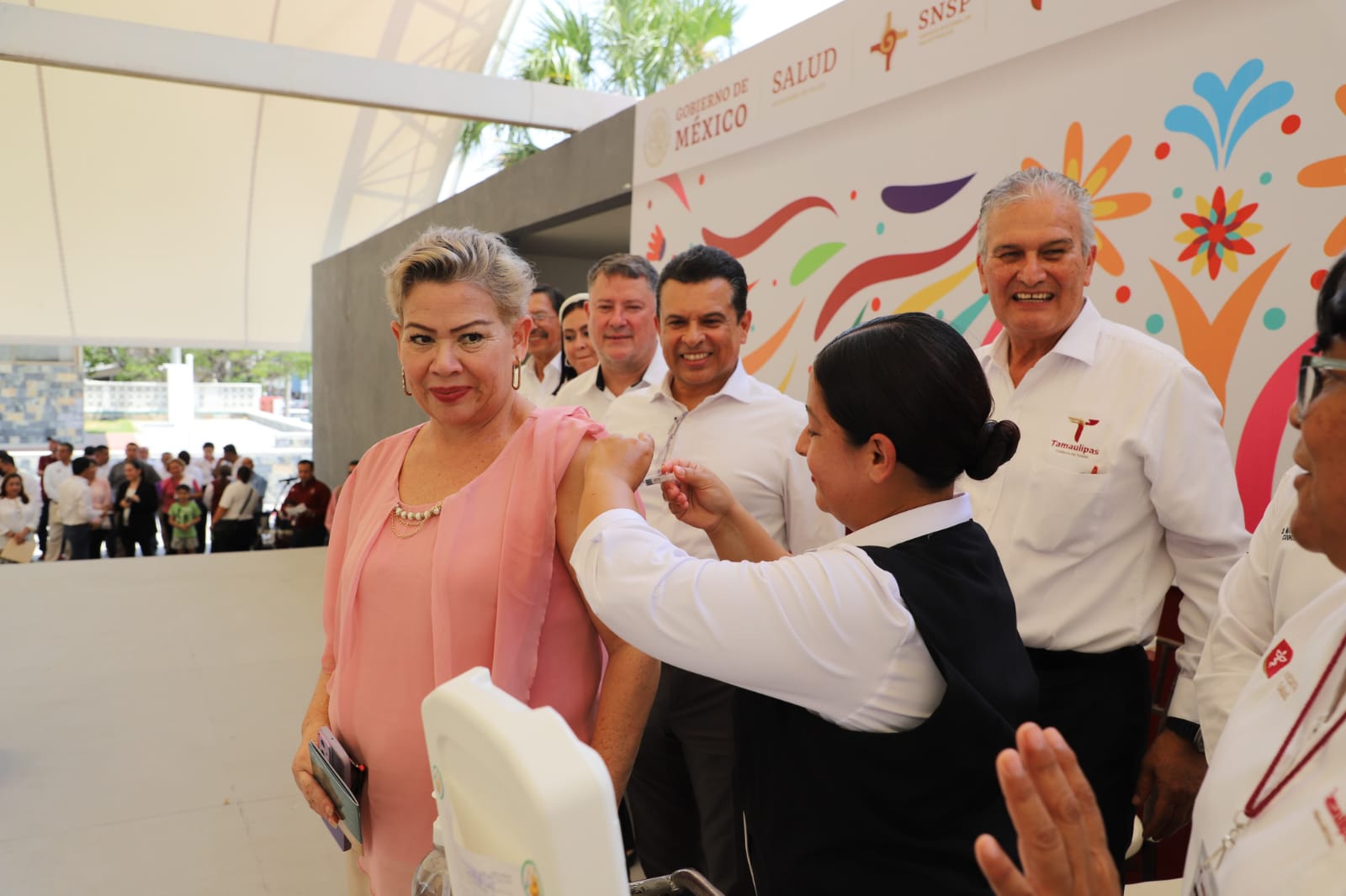 El evento, que se llevó a cabo en las instalaciones de la Unidad Cívica, Social y Deportiva «Adolfo Ruiz Cortines», de esta ciudad, se contó con la presencia del titular de la Coordinación Estatal del IMSS-BIENESTAR, Marggid Antonio Rodríguez Avendaño; el titular del Órgano de Operación Administrativa Desconcentrado del IMSS Tamaulipas, Federico Héctor Marín Martínez; el subdelegado médico del ISSSTE, Ernesto Lavín Hernández; el encargado del despacho de la Subsecretaría de Salud Pública, Rembrandt Reyes Nájera; así como el presidente municipal, Eduardo Abraham Gattás Báez y la encargada del despacho de la Jurisdicción Sanitaria N° I de Victoria, Zelenney Guadalupe Rodríguez Mendoza.