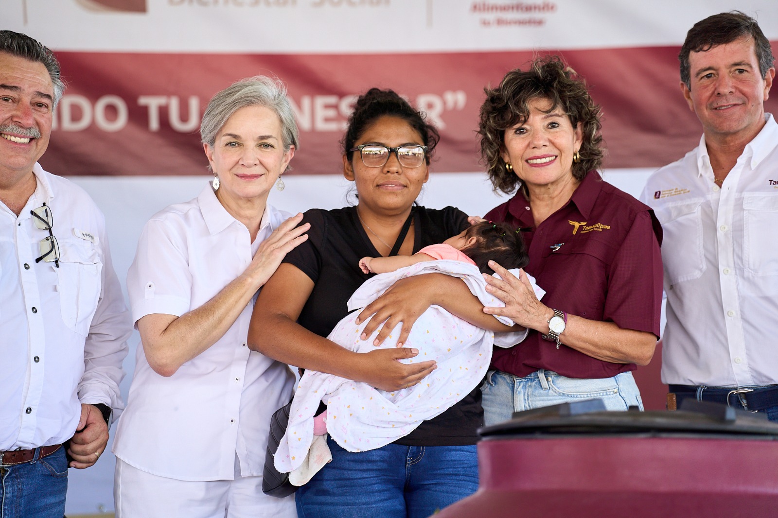En el mismo lugar, también se realizó la entrega de apoyos alimentarios, los cuales forman parte del programa Alimentando tu Bienestar que busca llegar a las familias más necesitadas, incluso en los rincones más remotos, contribuyendo a mejorar su calidad de vida y a reconstruir el tejido social.