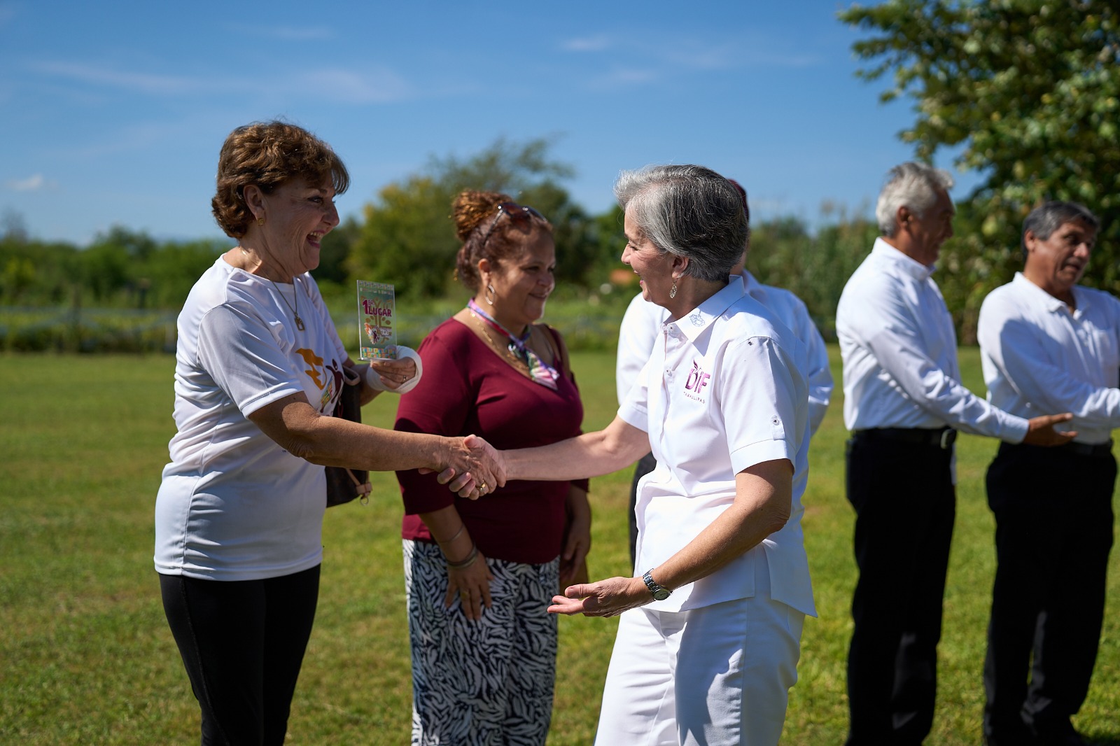 A su regreso a tierras tamaulipecas, los integrantes de la Casa Club del Adulto Mayor fueron recibidos por la doctora María de Villarreal, presidenta del Sistema DIF Tamaulipas, quien les reconoció su talento y el orgullo de representar dignamente a nuestro estado en el certamen nacional.