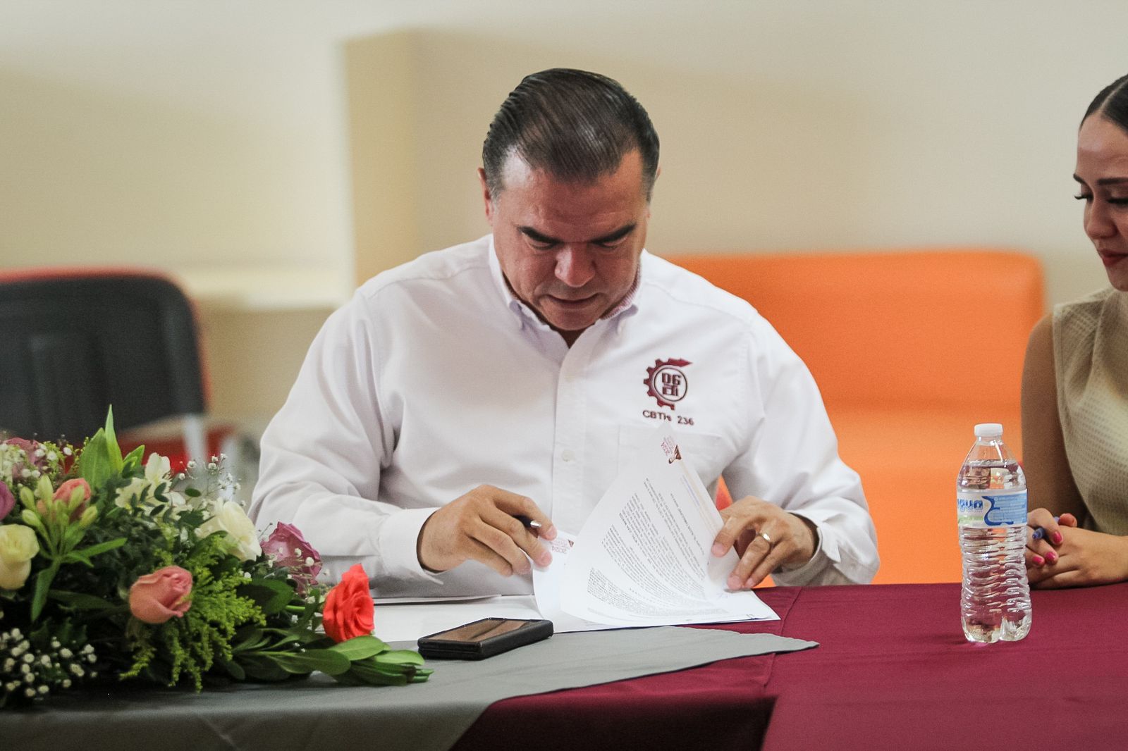 Este convenio, es con el objetivo de promover en las y los jóvenes estudiantes que se encuentren cursando el nivel medio superior y superior, oportunidades que instrumenten su experiencia laboral, así como otras habilidades que sirvan de valor curricular; el documento fue signado por Juan Marcos Saldaña García por parte del CBTIS 236, Oscar Azael Rodríguez Perales director del INJUVE y como testigos, María Fernanda Medina Mejía del instituto y la encargada de Vinculación del CBTiS 236, Thalía Jocelyin Caballero Verdines.