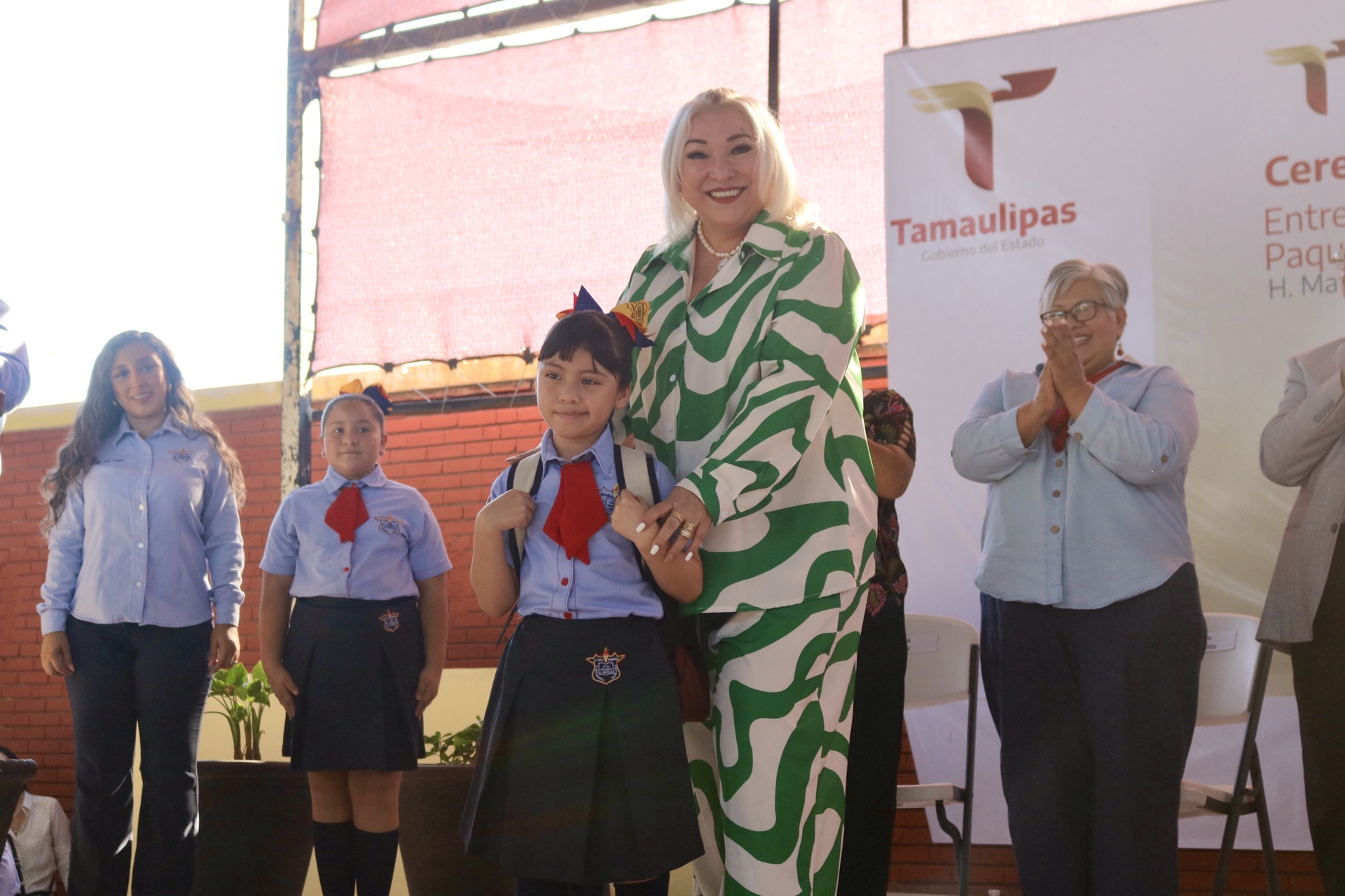 En el municipio de Matamoros, el Gobierno de Tamaulipas entregó 84,605 útiles escolares y un total de 567,309 libros de texto gratuitos para niños, niñas y adolescentes que este día regresaron a sus salones de clases.