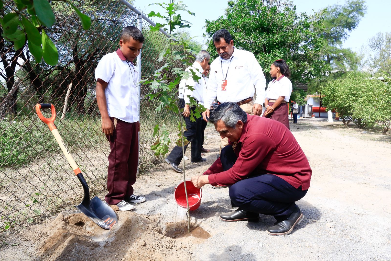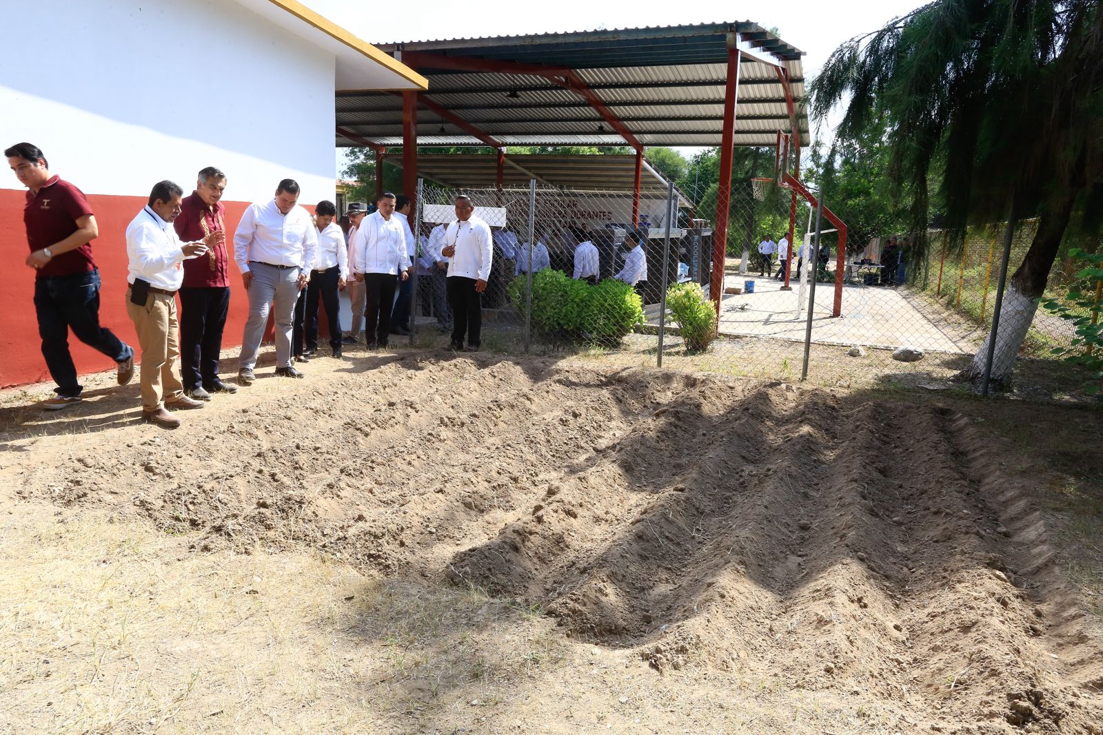 Como parte de su visita al albergue, donde fue recibido por el director Javier Garza, el gobernador y la presidenta del DIF iniciaron una campaña de reforestación, visitaron las áreas del taller de carpintería, el huerto escolar y la panadería artesanal.