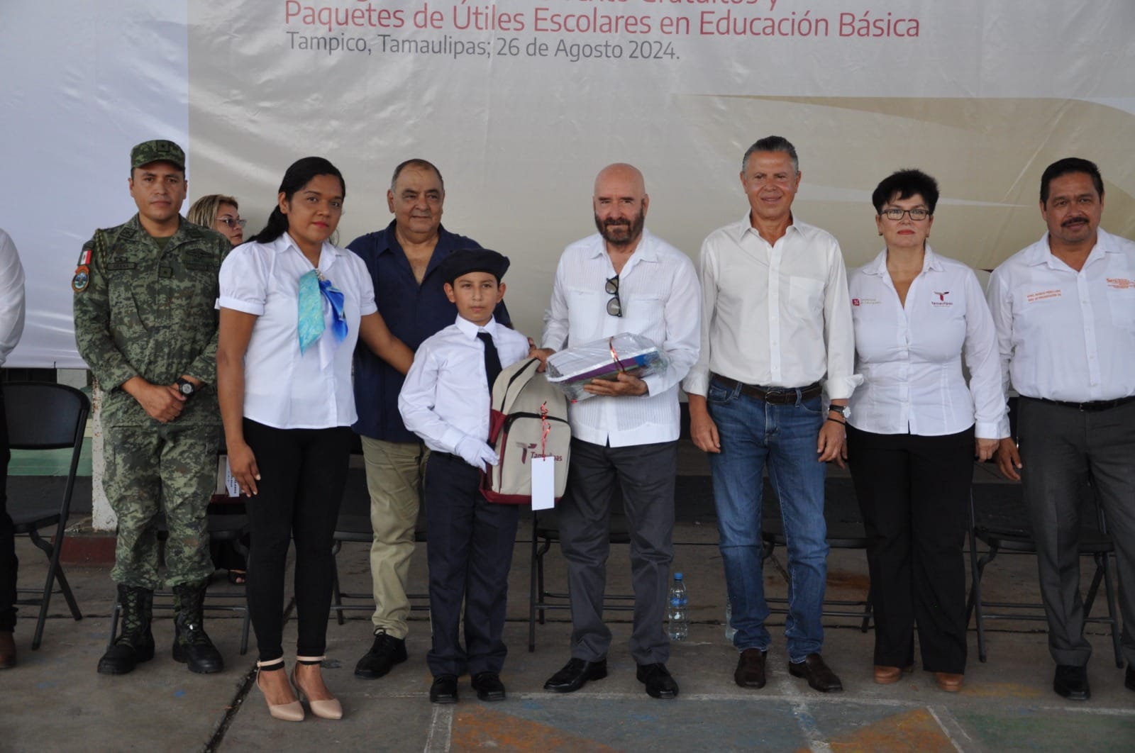 Durante la ceremonia, el secretario de Recursos Hidráulicos reconoció el humanismo del gobierno que encabeza Américo Villarreal Anaya al hacer una inversión de más de 330 mdp en uniformes, útiles escolares y libros de texto gratuitos para beneficio de 555 mil estudiantes tamaulipecos, asegurando de esta manera que cuenten con las herramientas indispensables para comenzar el ciclo escolar.