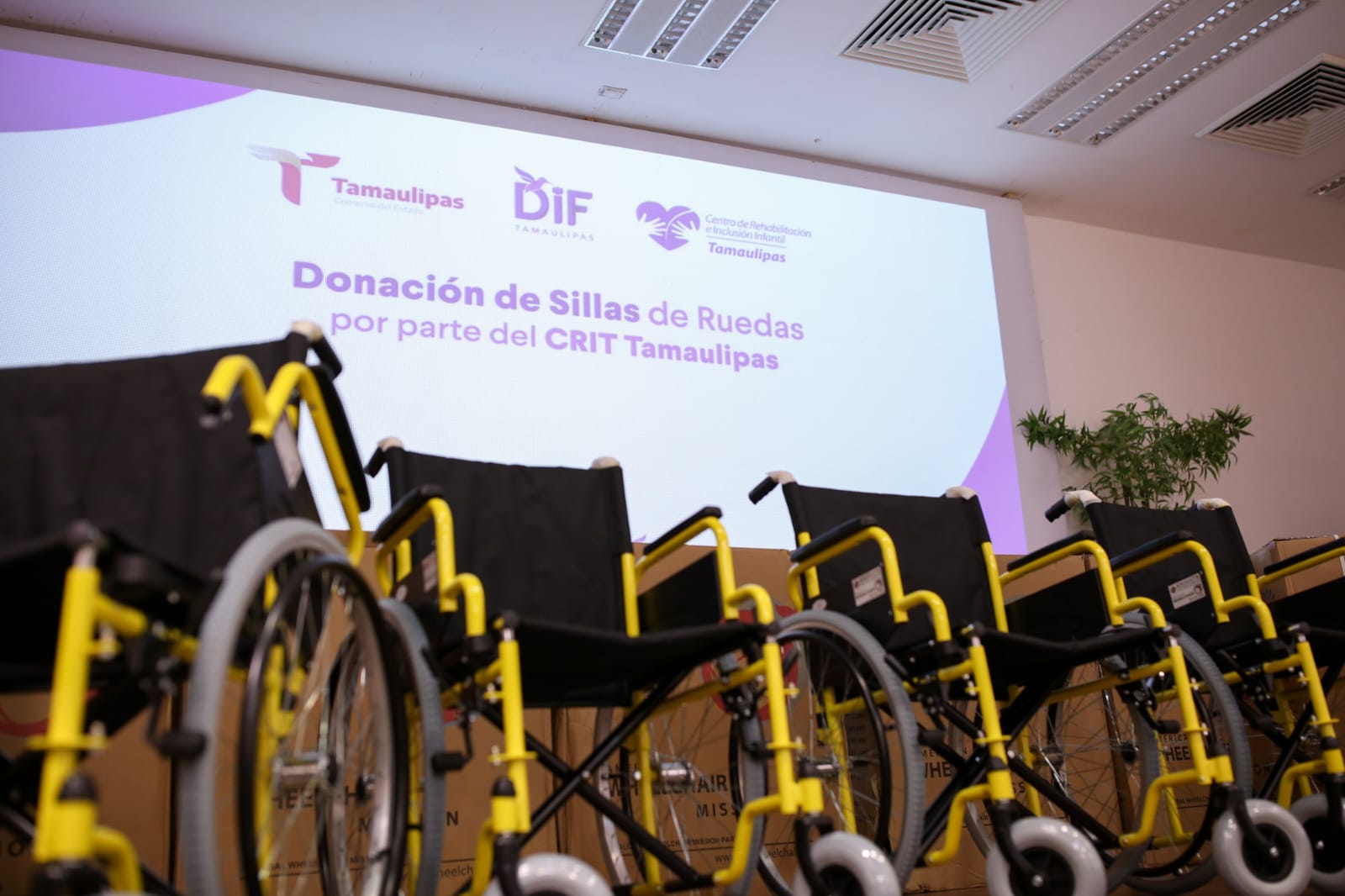 El Centro de Rehabilitación e Inclusión Infantil Teletón de Tamaulipas (CRIT), llevó a cabo un donativo consistente en 59 sillas de ruedas al Sistema para el Desarrollo Integral de la Familia de Tamaulipas que preside la doctora María de Villarreal, que serán de gran utilidad para las personas que más las requieran y que se encuentren con algún grado de vulnerabilidad.