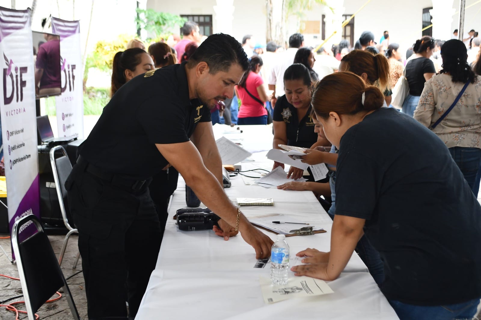 Teniendo como principio la equidad de género, personal del área de reclutamiento de la Secretaría de Seguridad Pública de Tamaulipas (SSPT) participó en la Feria “Empleo para Todas” celebrada en la Presidencia Municipal de Ciudad Victoria.