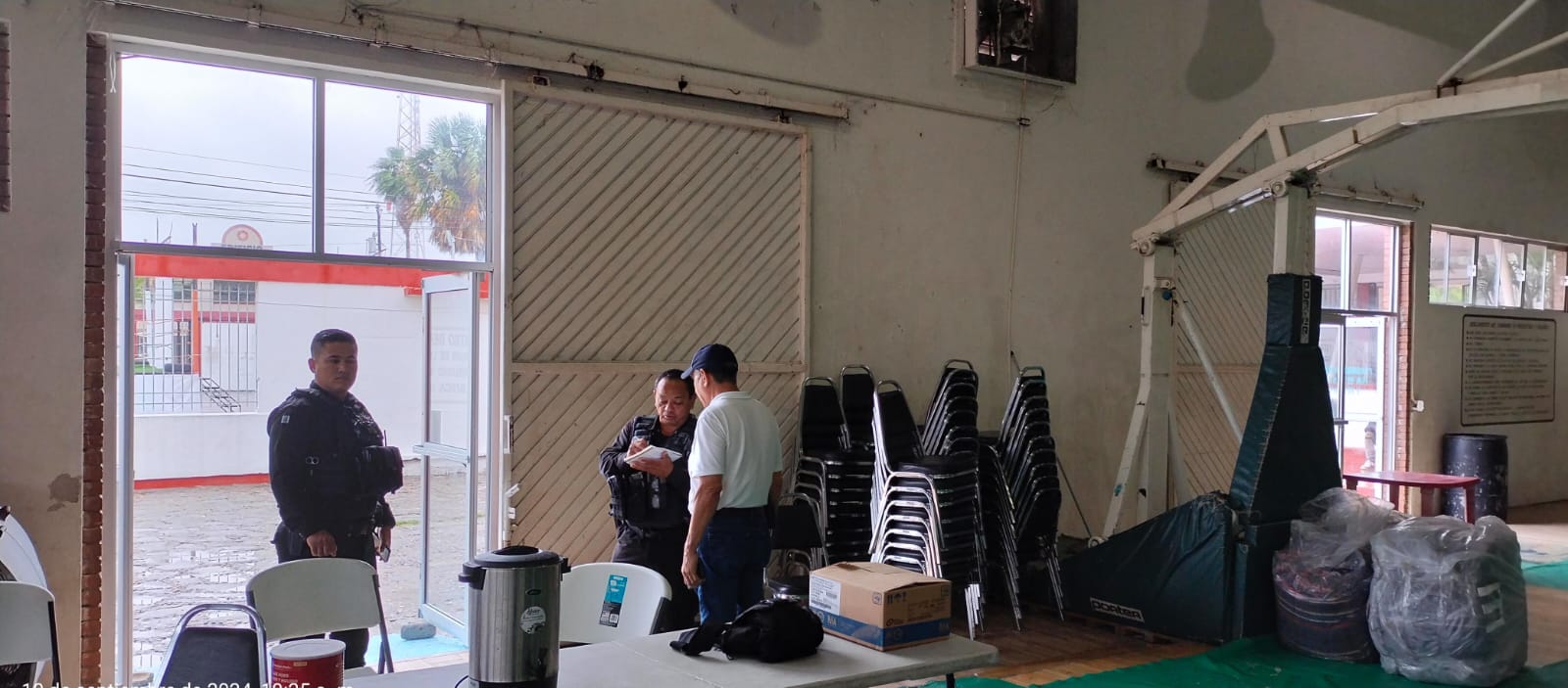 Una de las acciones efectuadas por elementos de esta corporación fue la realización de recorridos de seguridad perimetral en la Alberca Chávez, sitio habilitado como refugio temporal, hasta el momento, no hay personas albergadas en el sitio.
