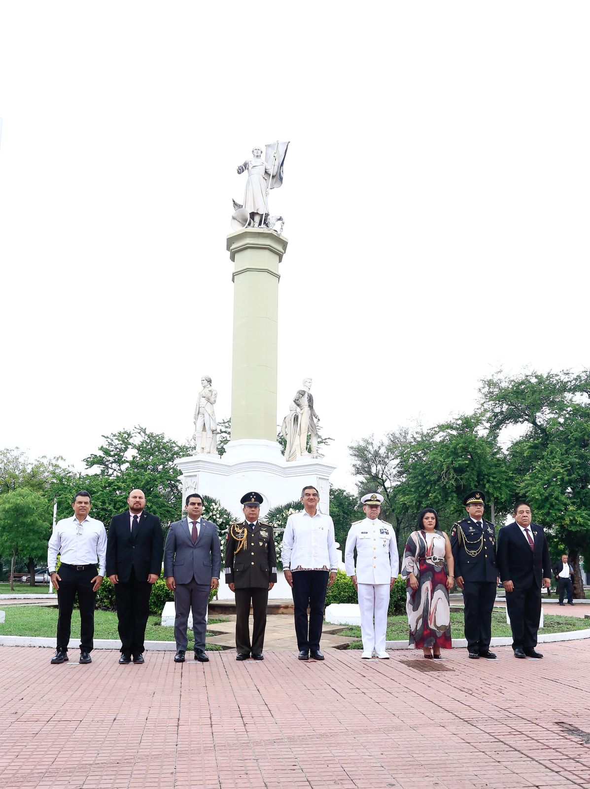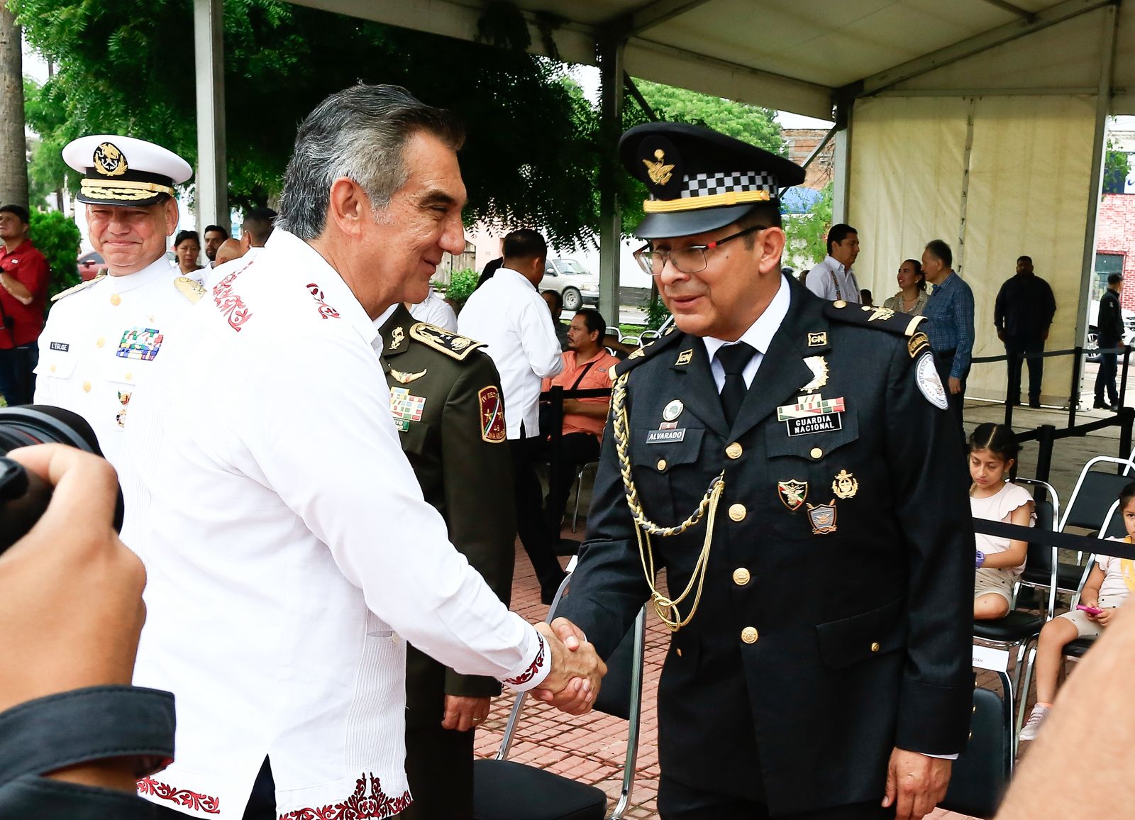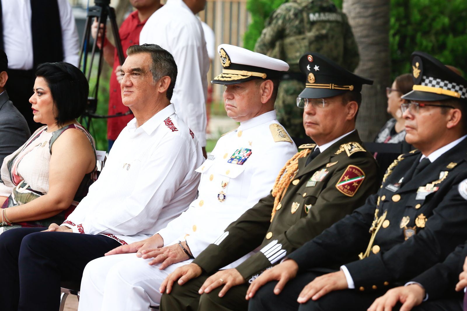 La ceremonia cívica se realizó en la Plaza de los Héroes, donde se rindieron honores a la bandera y se entonaron, con fervor patriótico, el Himno Nacional y el Himno a Tamaulipas y posteriormente se montó esta guardia de honor.