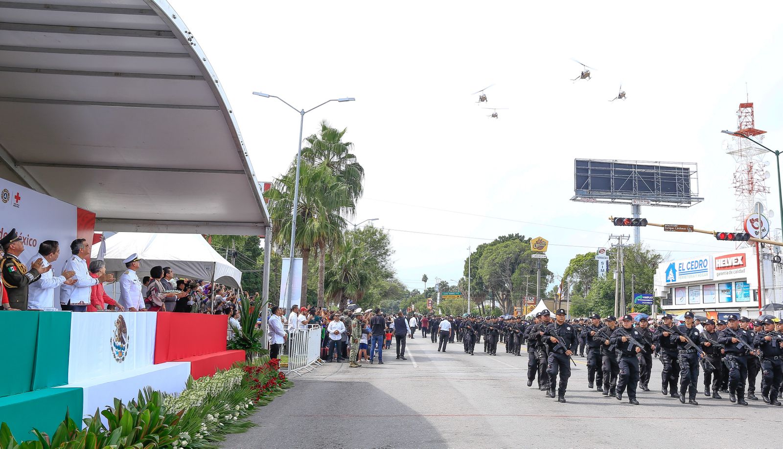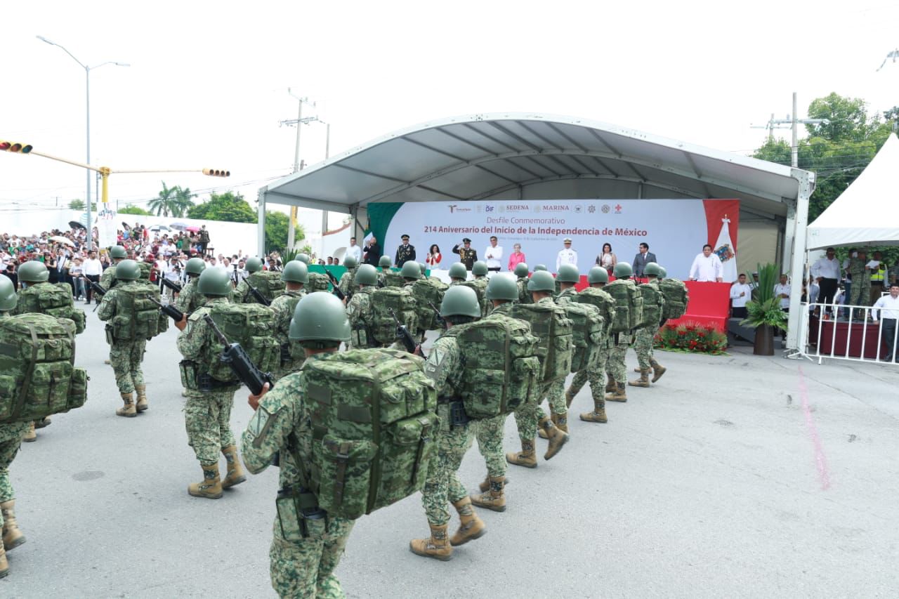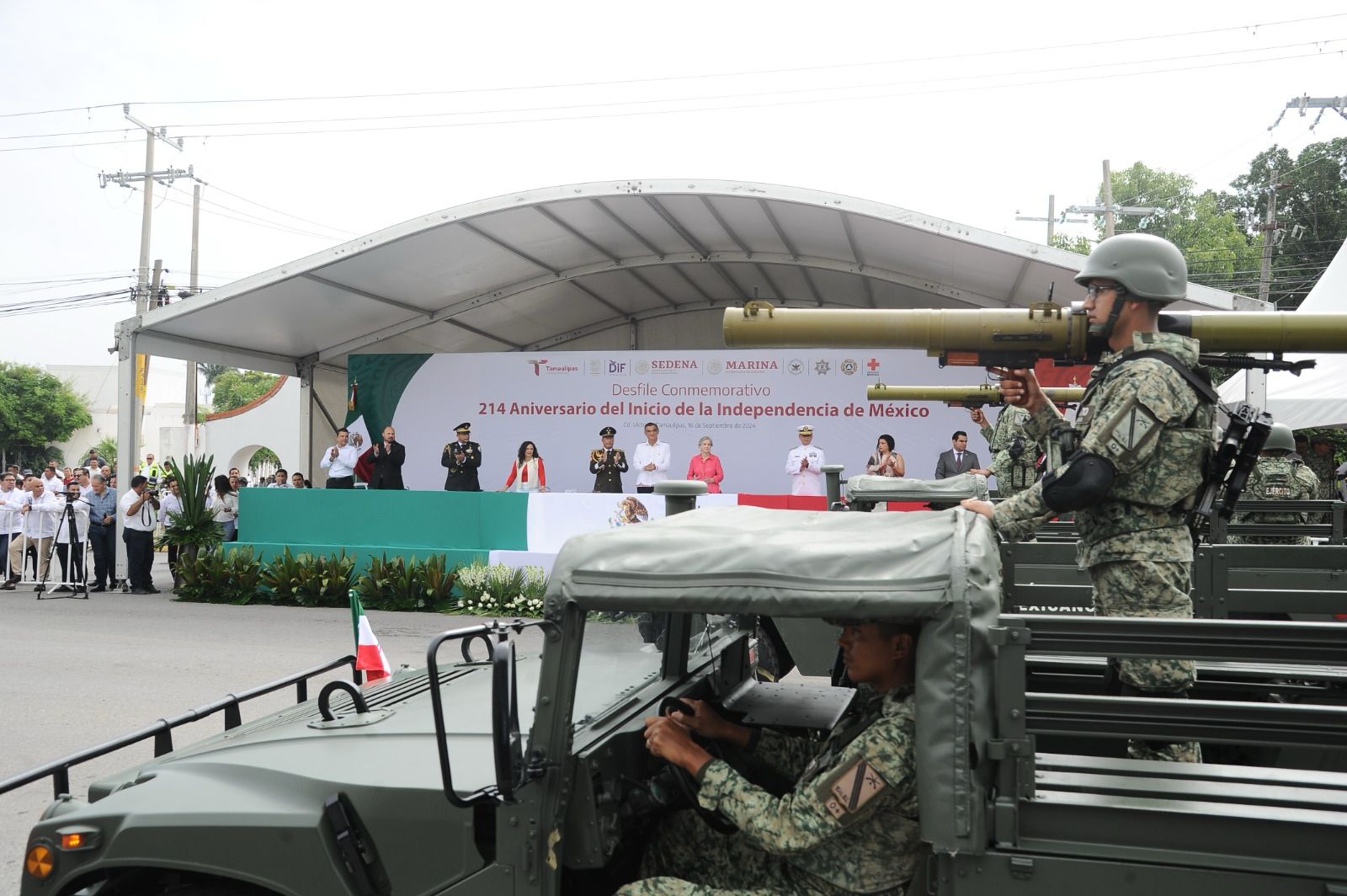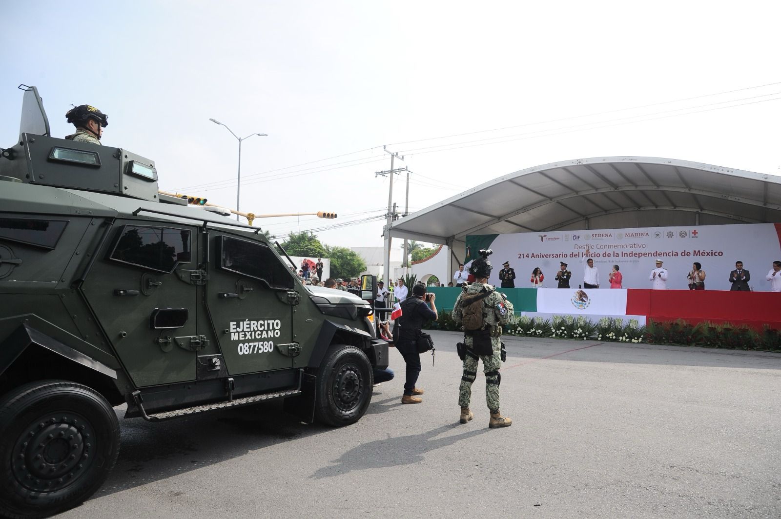 Como parte de las celebraciones por el 214 aniversario del inicio de la Independencia de México, el gobernador Américo Villarreal Anaya presidió el desfile cívico-militar, en el cual participaron 4,384 elementos de las Fuerzas Armadas, instituciones educativas y agrupaciones especiales, organizados en 39 contingentes.