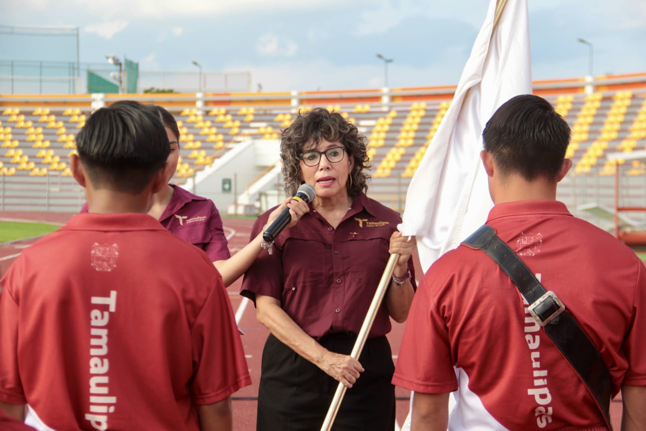 Durante el evento, desarrollado en la pista de atletismo del estadio Marte R. Gómez, la secretaria Silvia Casas y el titular del Instituto del Deporte de Tamaulipas, Manuel Alejandro Virués Lozano, entregaron los uniformes oficiales a deportistas y entrenadores que competirán en los próximos días en los Paranacionales CONADE 2024.