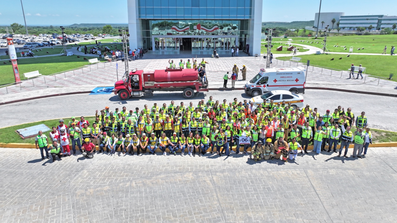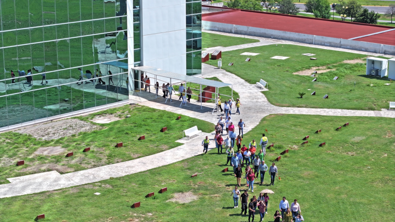 Más de 2,000 personas evacuadas en tiempo récord en el Simulacro Nacional 2024 realizado en la Torre Bicentenario de Ciudad Victoria.